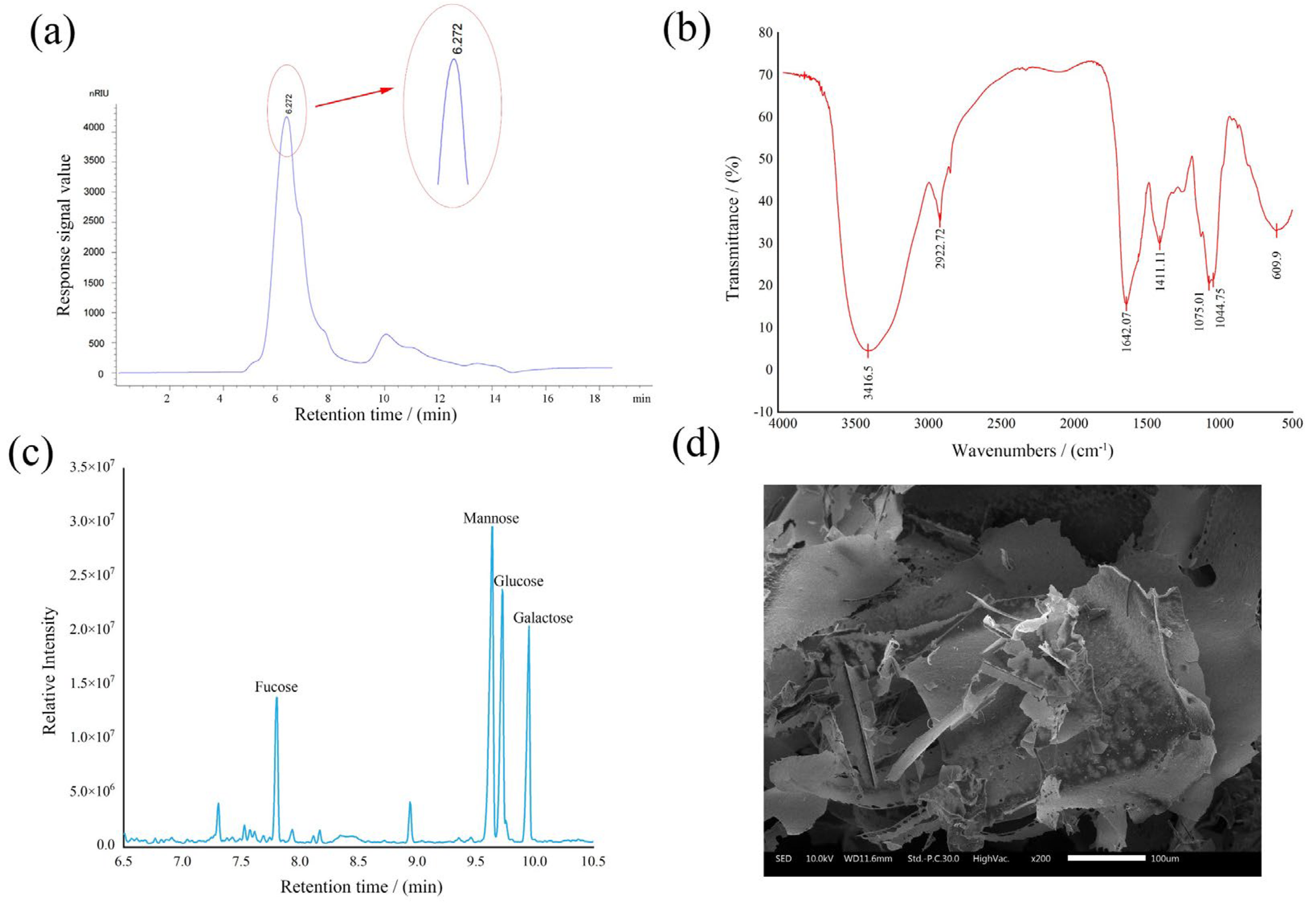 2.5. Average Molecular Weight and Monosaccharide Composition Analysis of SLP