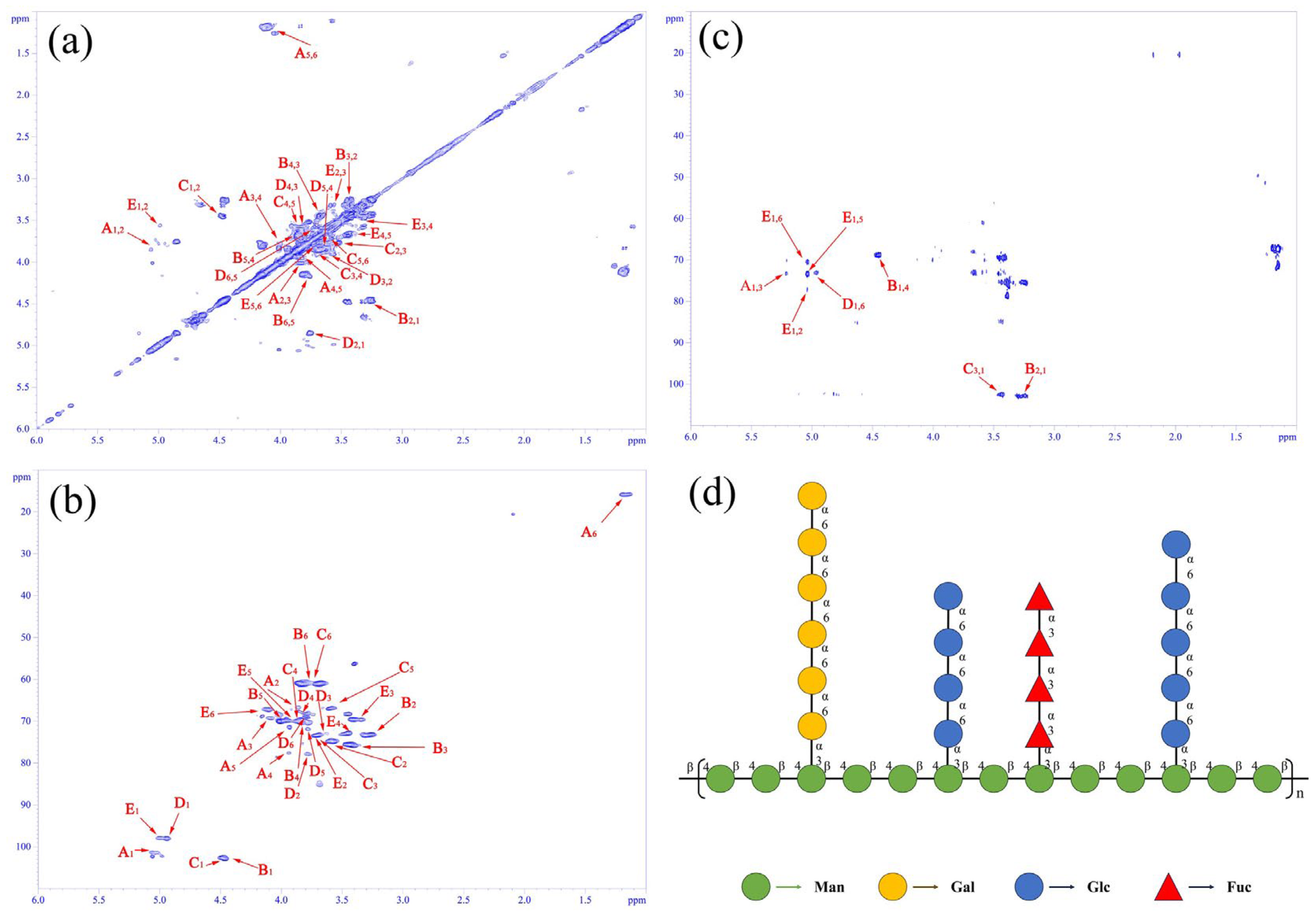 3.3. Two-Dimensional NMR Spectral Analysis of SLP