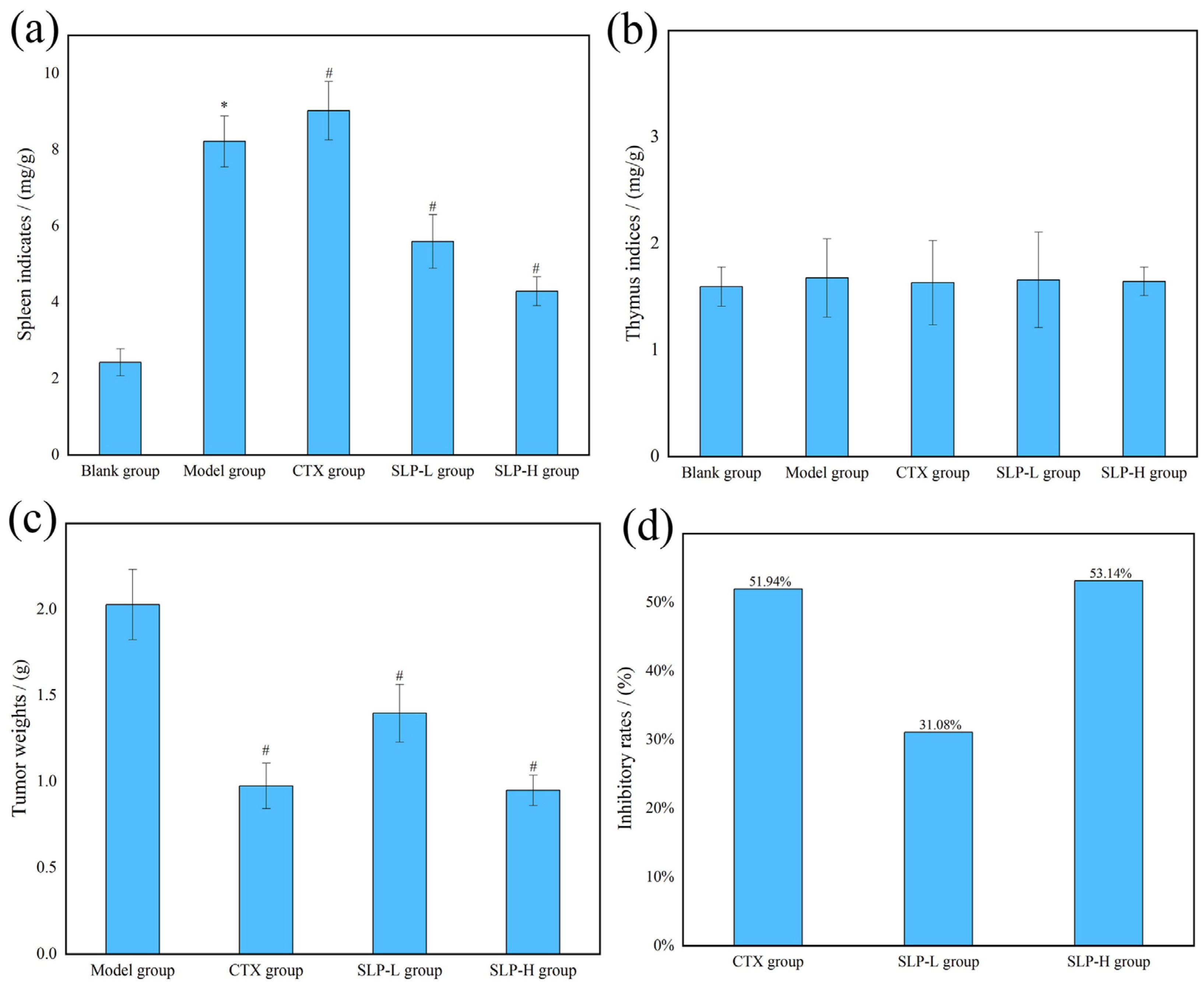 3.4. Effects of SLP on Physiological Parameters in Tumor-Bearing Mice