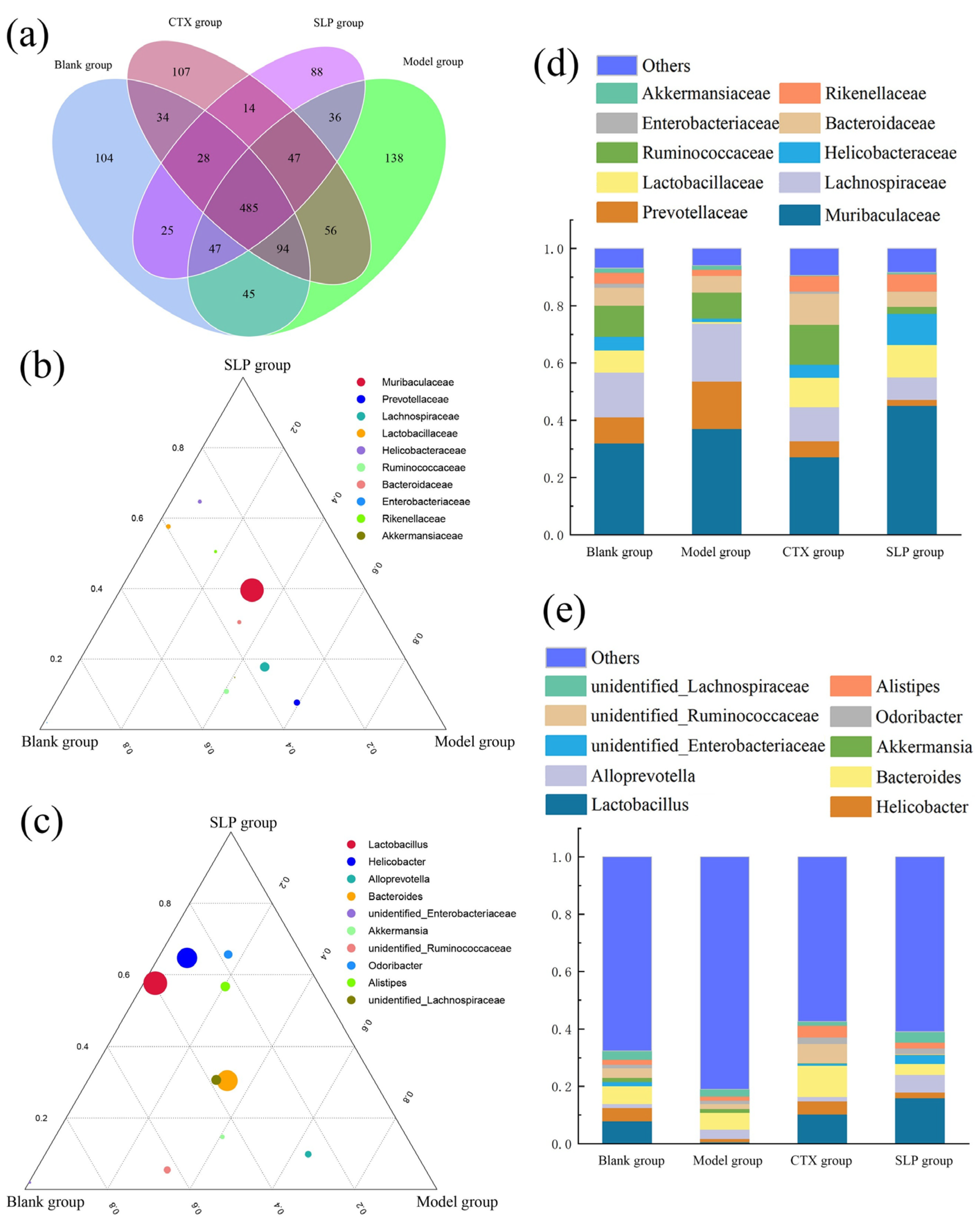 3.5. Effects of SLP on Gut Microbiota Diversity in Tumor-Bearing Mice