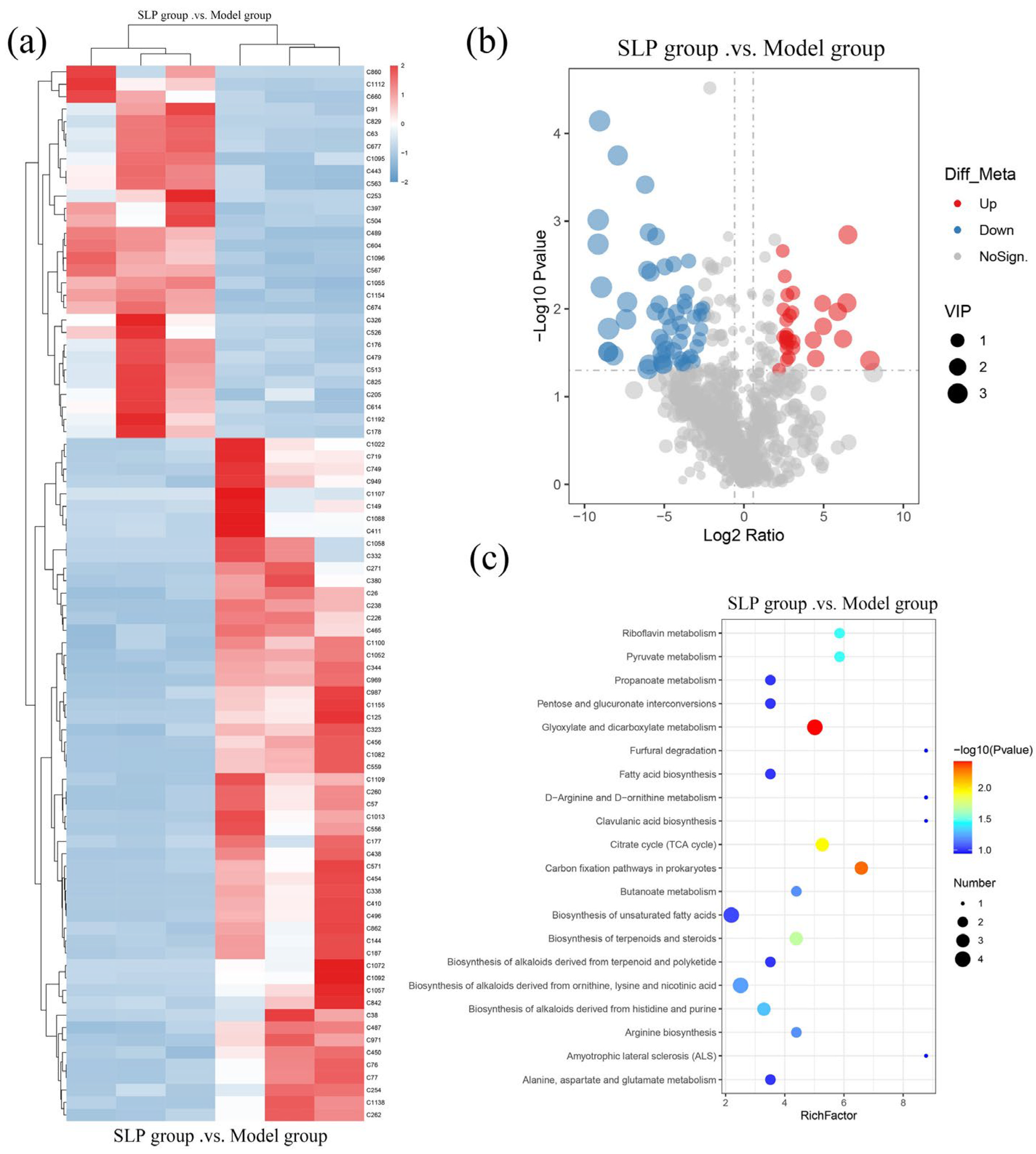 3.6. Effects of SLP on Gut Microbiota Metabolites in Tumor-Bearing Mice