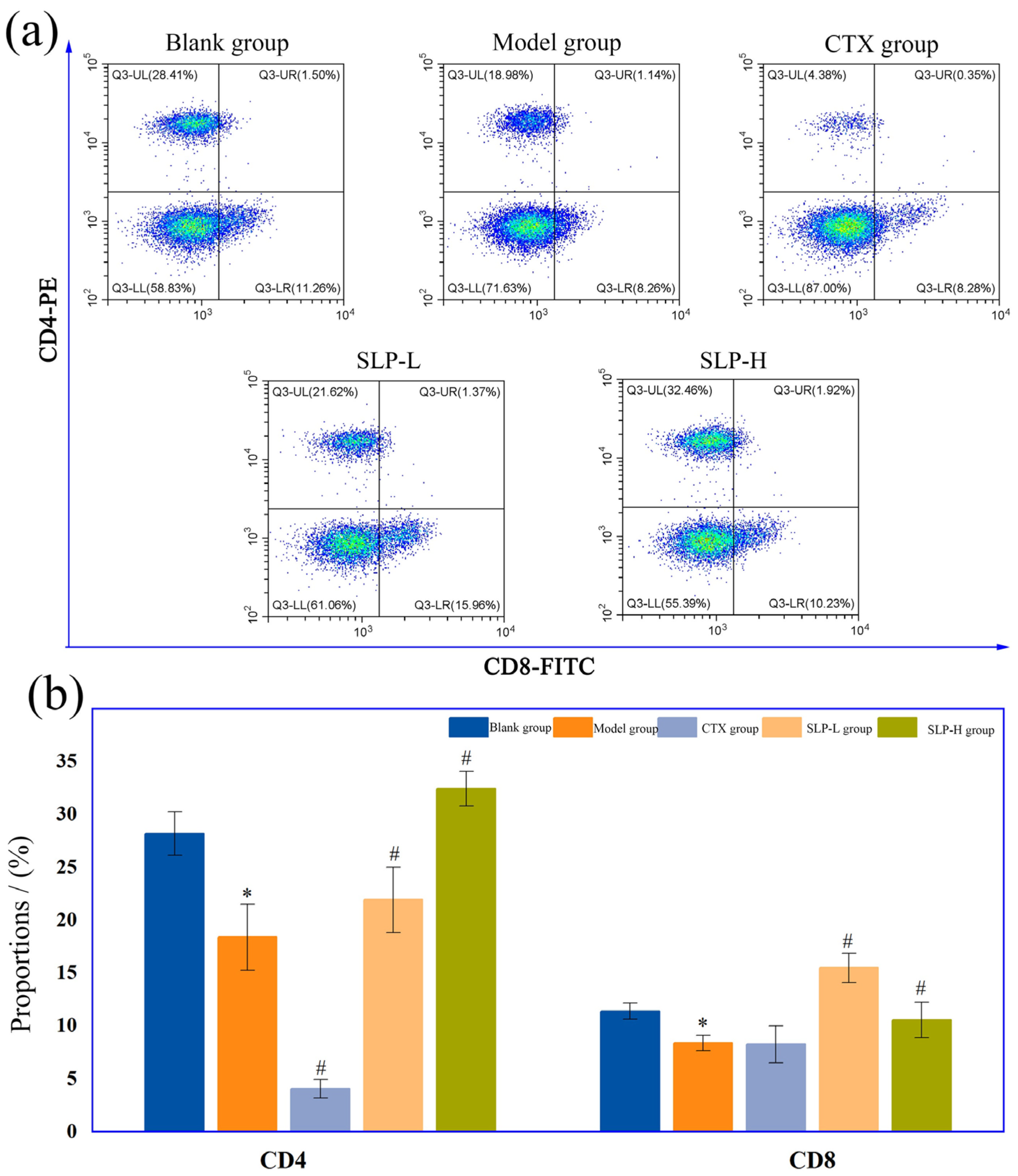 3.7. Effects of SLP on T Cell Subset Distributions in Tumor-Bearing Mice