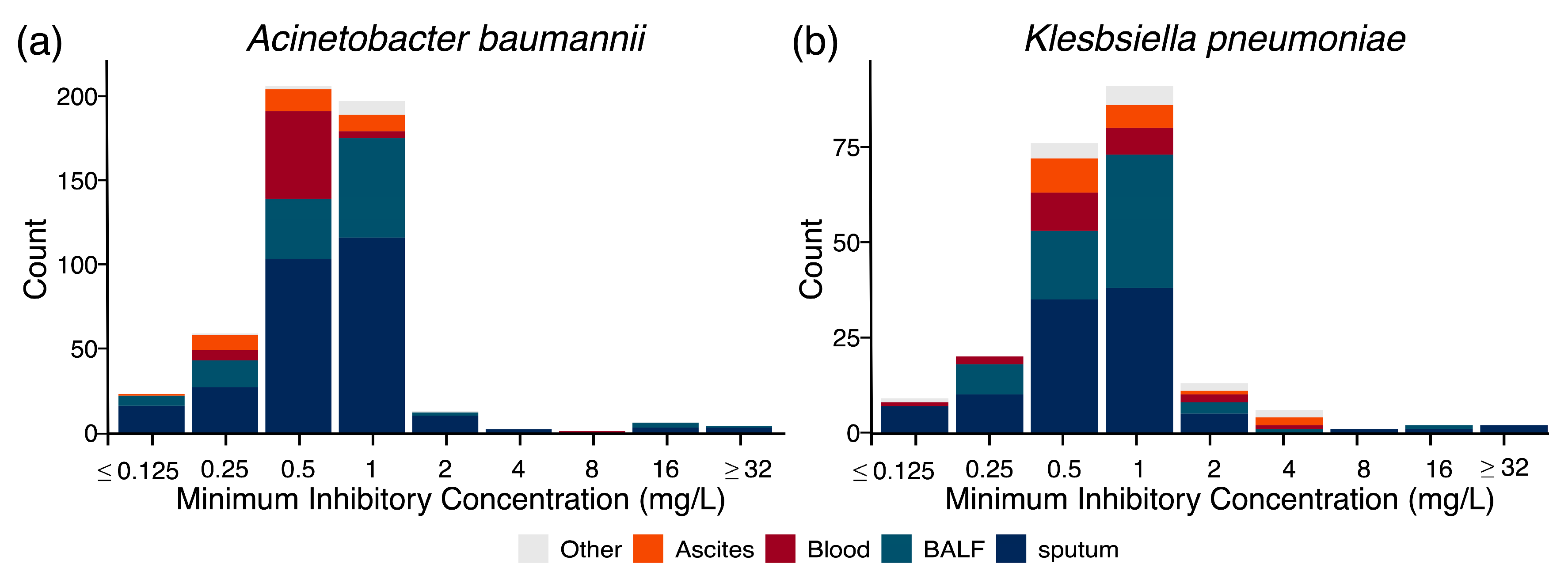 - Jo, J.; Kwon, K.T.; Ko, K.S. Multiple Heteroresistance to Tigecycline and Colistin in Acinetobacter Baumannii Isolates and Its Implications for Combined Antibiotic Treatment. J. Biomed. Sci. 2023, 30, 37. [Google Scholar] [CrossRef]