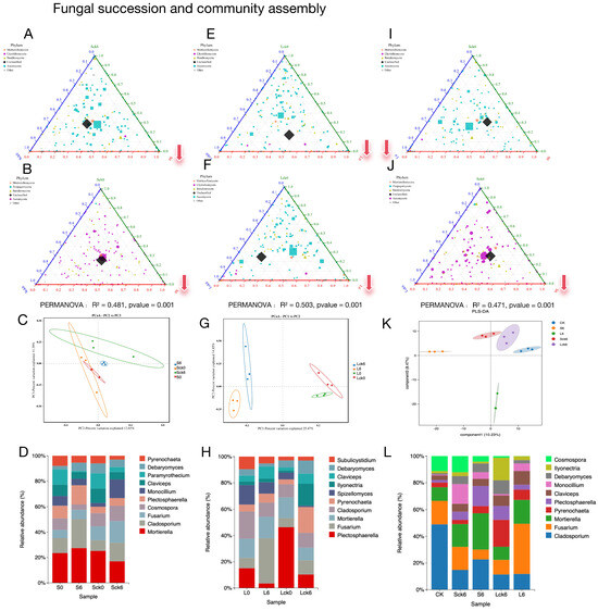 Figure 1C,G) and shifts in the relative abundance of the top 10 fungal genera (