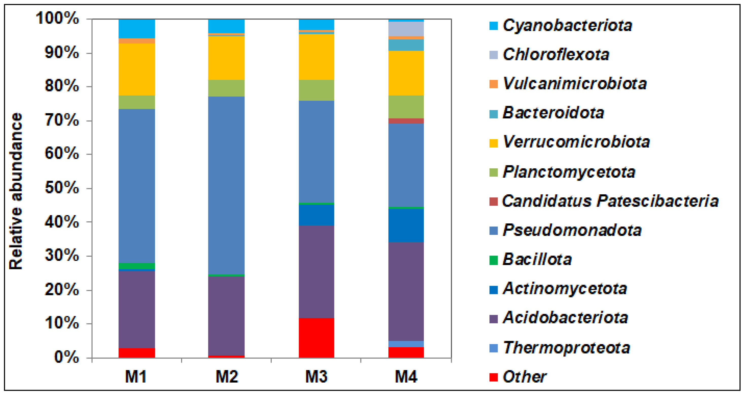- Rawat, S.R.; Männistö, M.K.; Bromberg, Y.; Häggblom, M.M. Comparative genomic and physiological analysis provides insights into the role of Acidobacteria in organic carbon utilization in Arctic tundra soils. FEMS Microbiol. Ecol. 2012, 82, 341–355. [Google Scholar] [CrossRef]