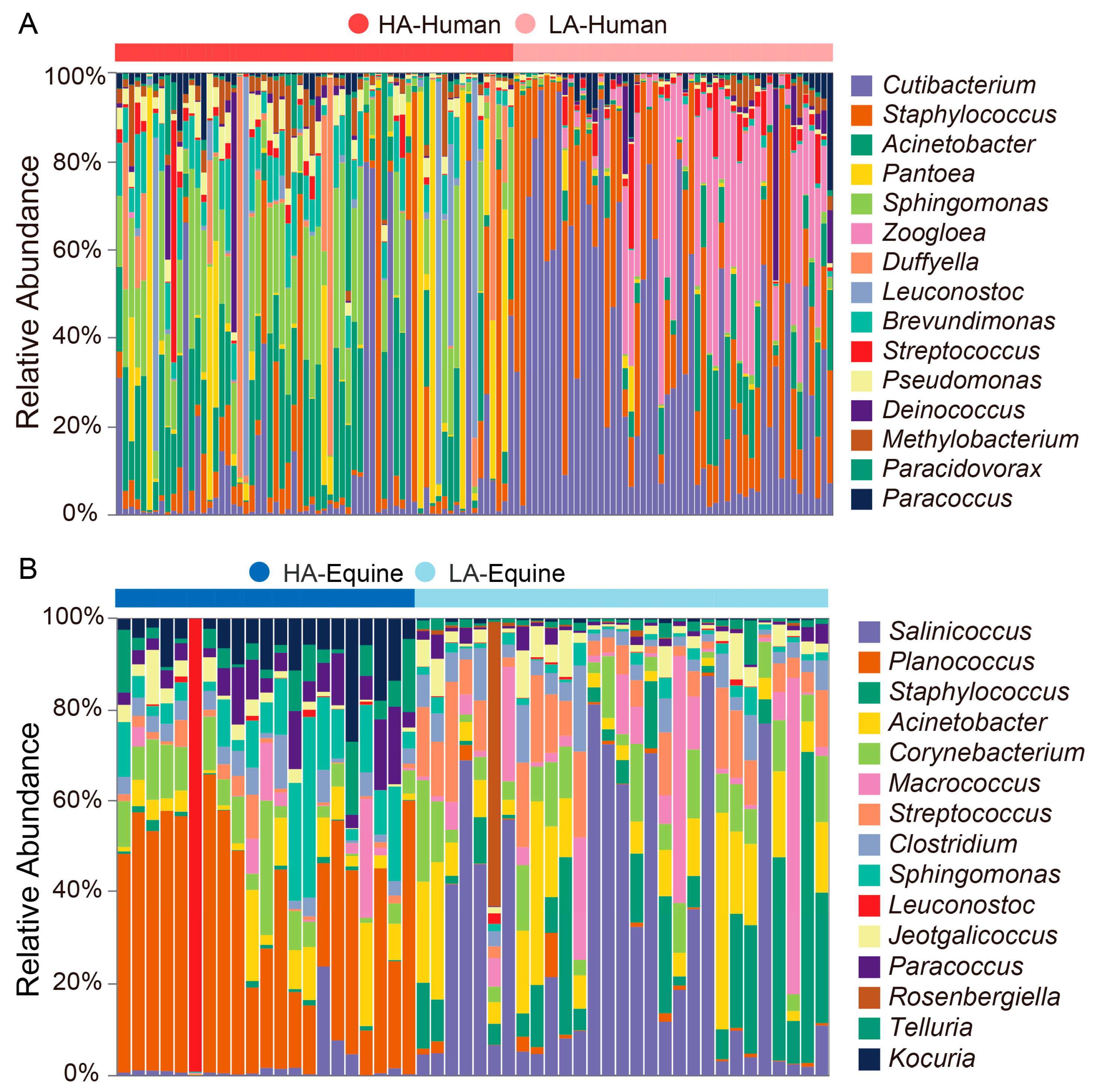 3.1. Altitude Affects the Diversity of Skin Microbiota of Humans and Horses Living at Different Altitudes