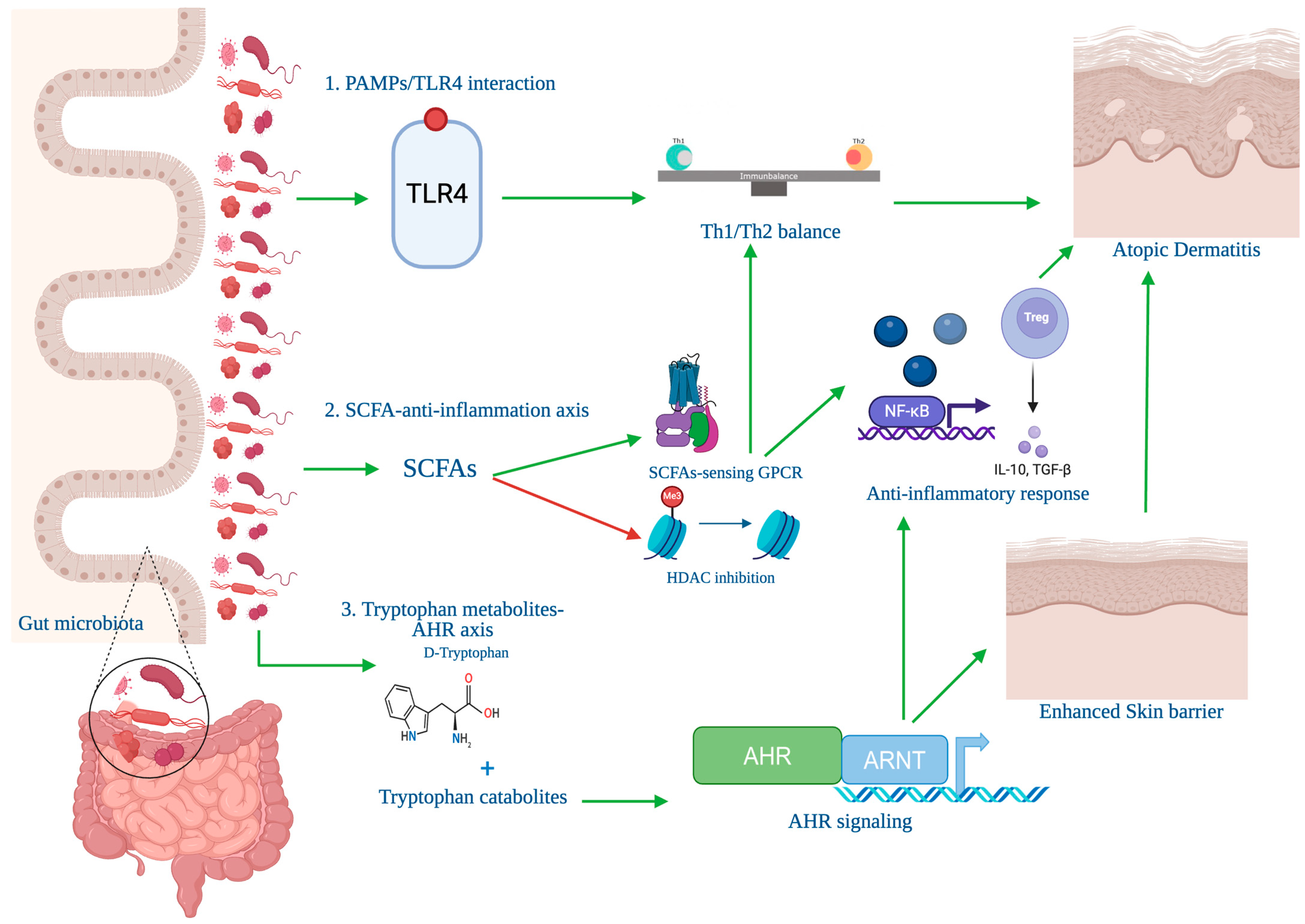 4.1. Gut Microbiome Dysbiosis and Therapeutic Modulation in Atopic Dermatitis