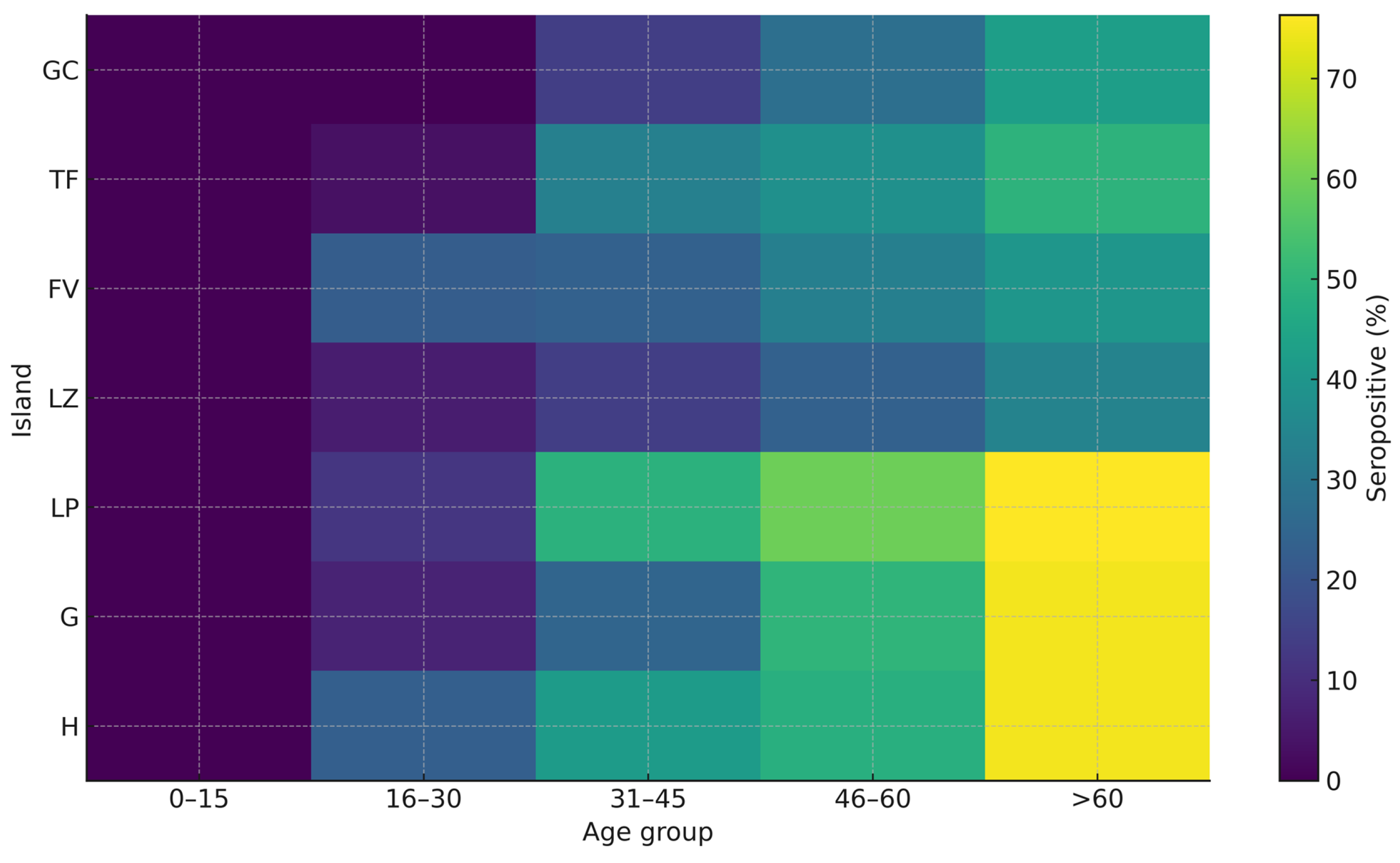 APA StyleGonzález-Rodríguez, E., Montoya-Alonso, J. A., Santana-Hernández, K. M., Carretón, E., Ventura, M. R., & Rodríguez-Ponce, E. (2026). Human Toxoplasma gondii Seroprevalence in the Canary Islands: Implications for One Health Surveillance and Control. Microorganisms, 14(1), 67. https://doi.org/10.3390/microorganisms14010067