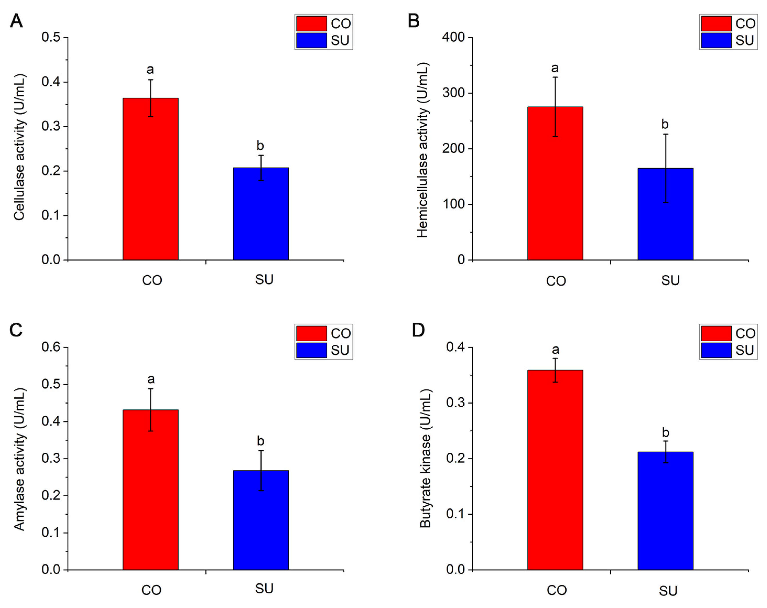 3.3. Effects of Different Feeding Methods on Enzyme Activities of Yak Calves