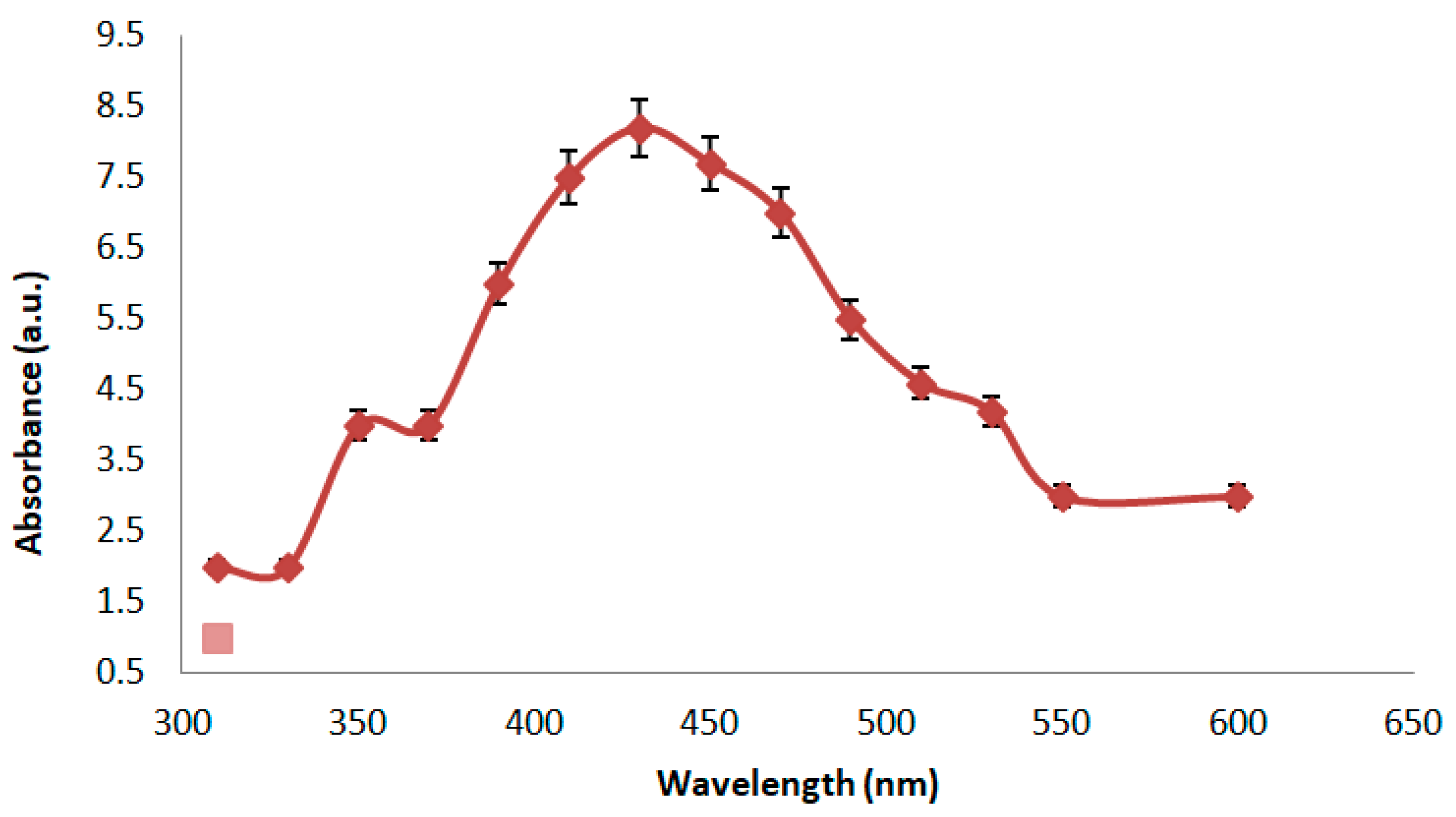 The bacterial filtrate and AgNO3 mixtures were analyzed at room temperature for UV–visible absorption using a T60 Visible Spectrophotometer (PG Instruments Limited- Leicestershire, UK) at 450 nm; the absorbance of silver nanoparticles was measured.