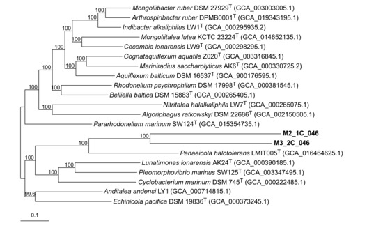 T, were isolated from coastal sediments collected in Fangchenggang, Guangxi Province, China. Phylogenetic analyses based on 16S rRNA gene and whole-genome sequences placed strain FCG-A2
