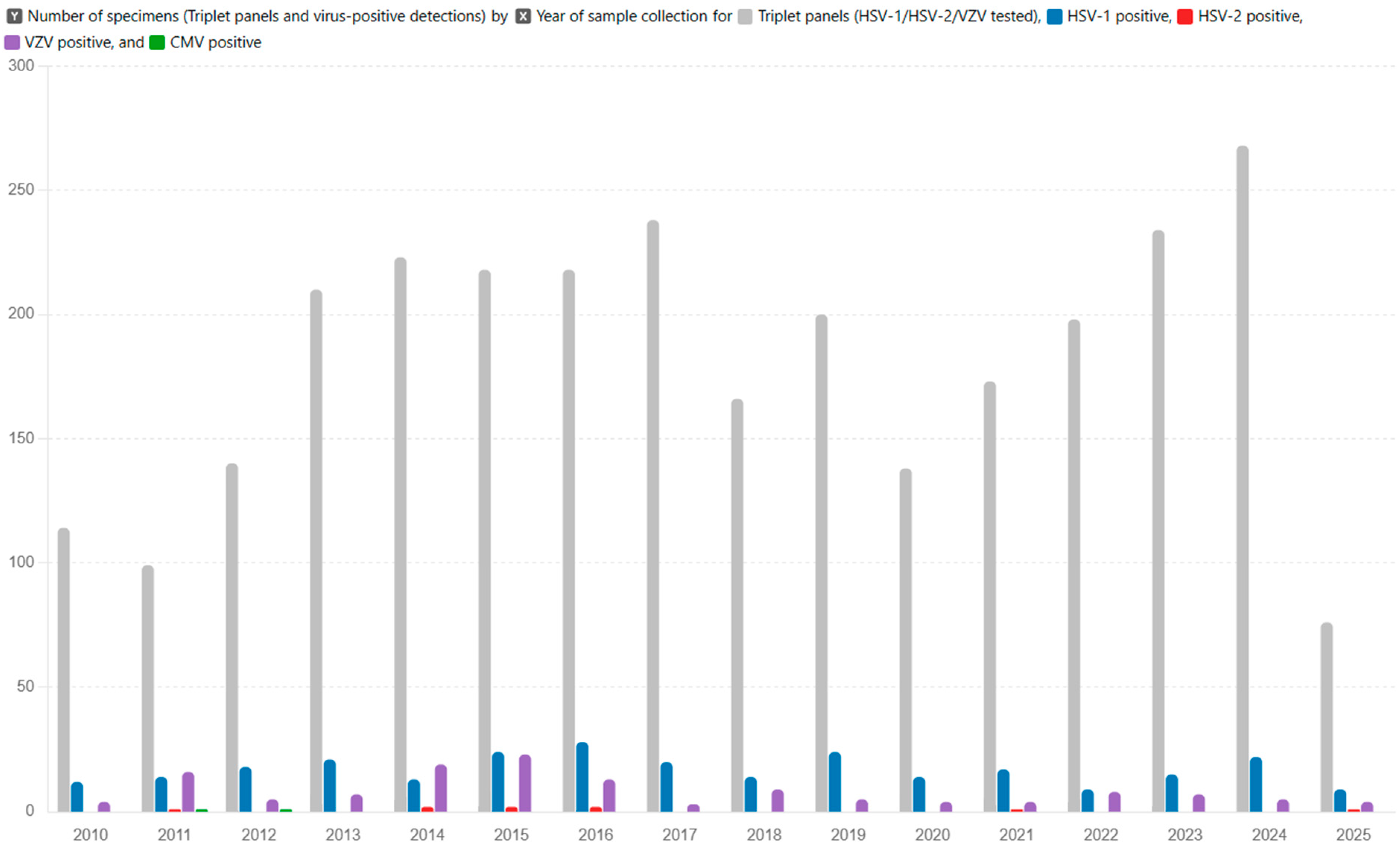 | Year | Triplet Panels | HSV-1 Pos | HSV-2 Pos | VZV Pos | CMV Pos |