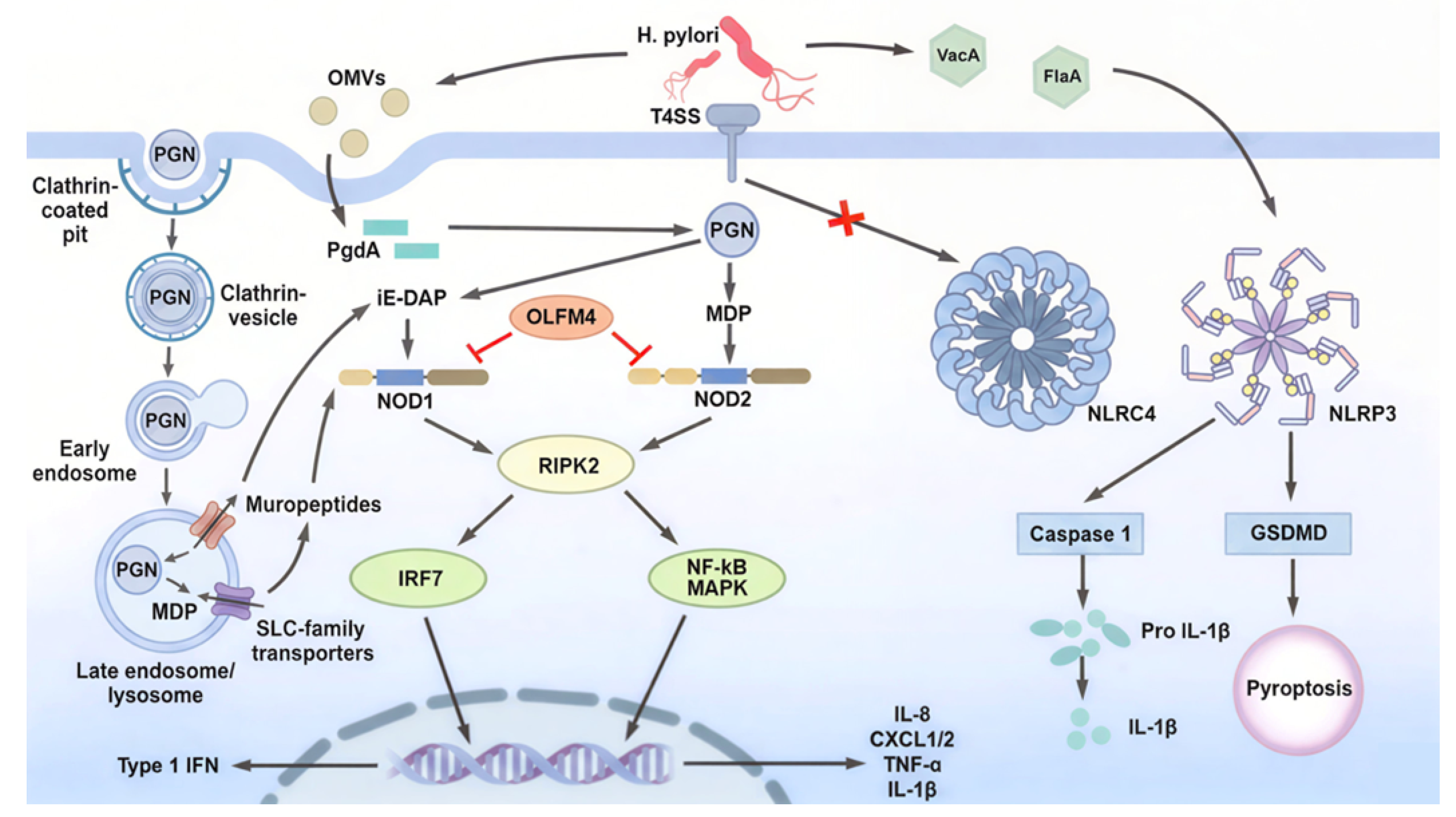 3. The Role of NLRs in Helicobacter pylori Infection