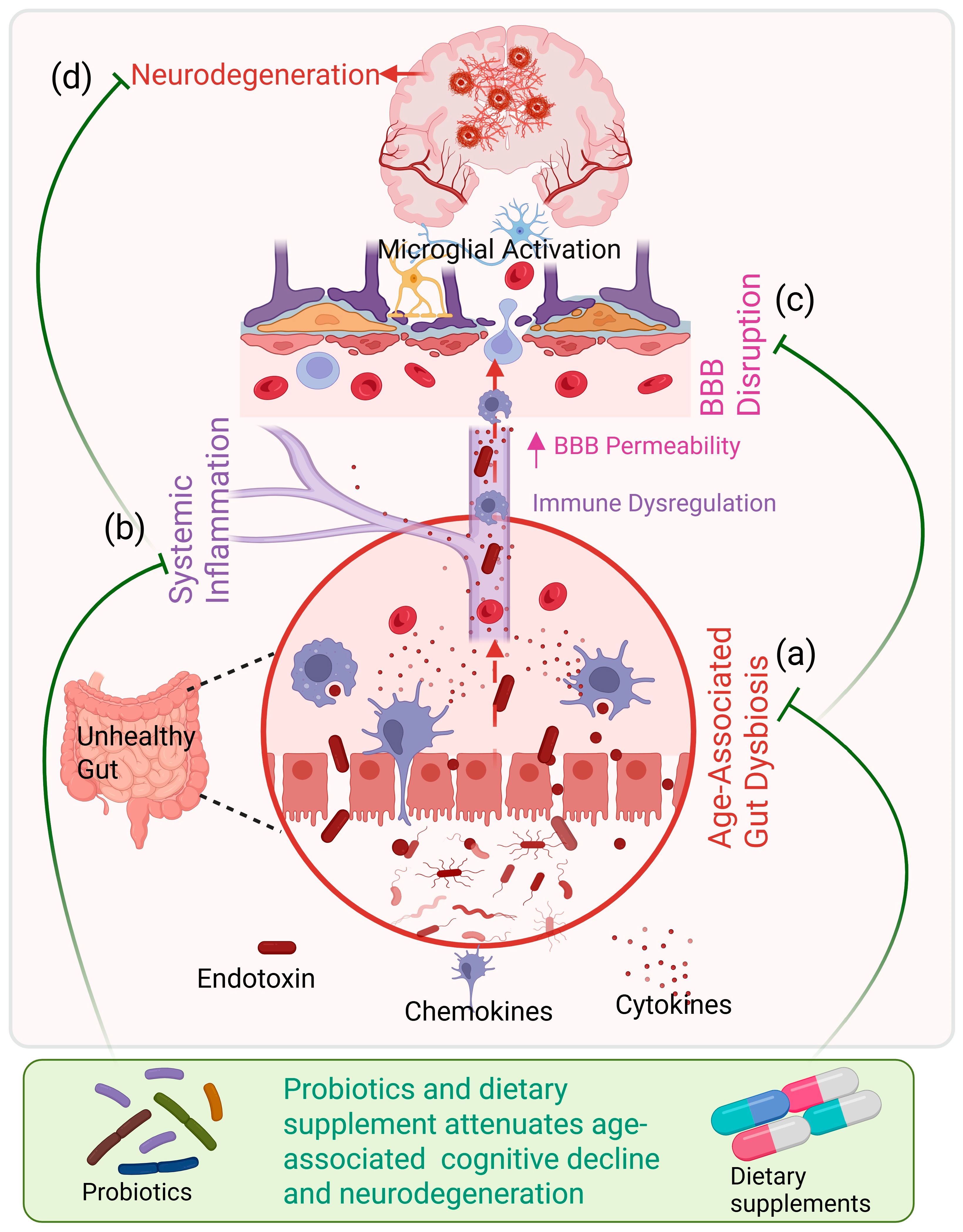 3. Mechanistic Interface: Aging, Gut Dysbiosis, and Neurodegeneration