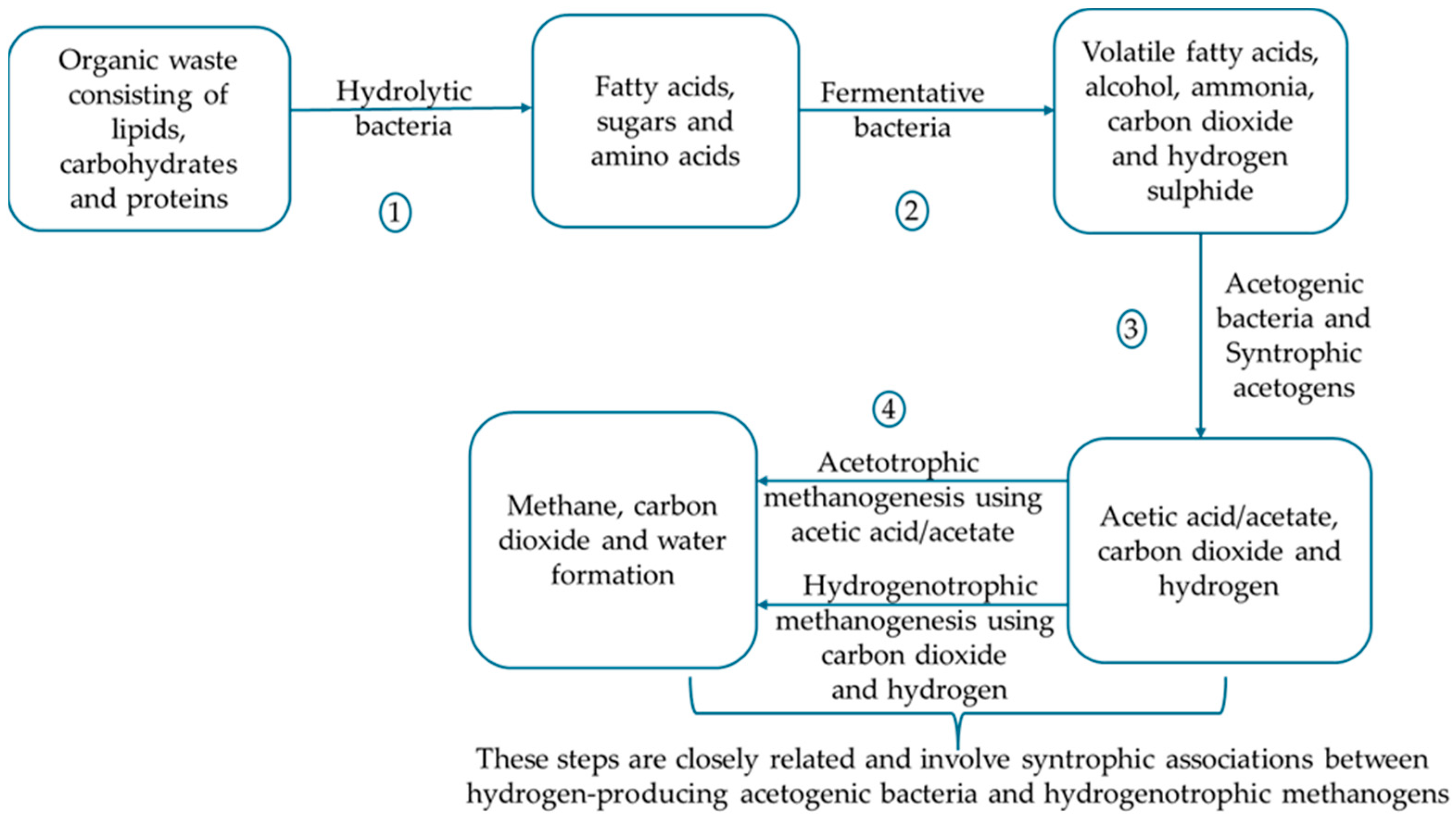 2.2. Microorganisms Involved in the Anaerobic Digestion Process