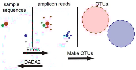 - Callahan, B.J.; McMurdie, P.J.; Holmes, S.P. Exact sequence variants should replace operational taxonomic units in marker-gene data analysis. ISME J. 2017, 11, 2639–2643. [Google Scholar] [CrossRef]