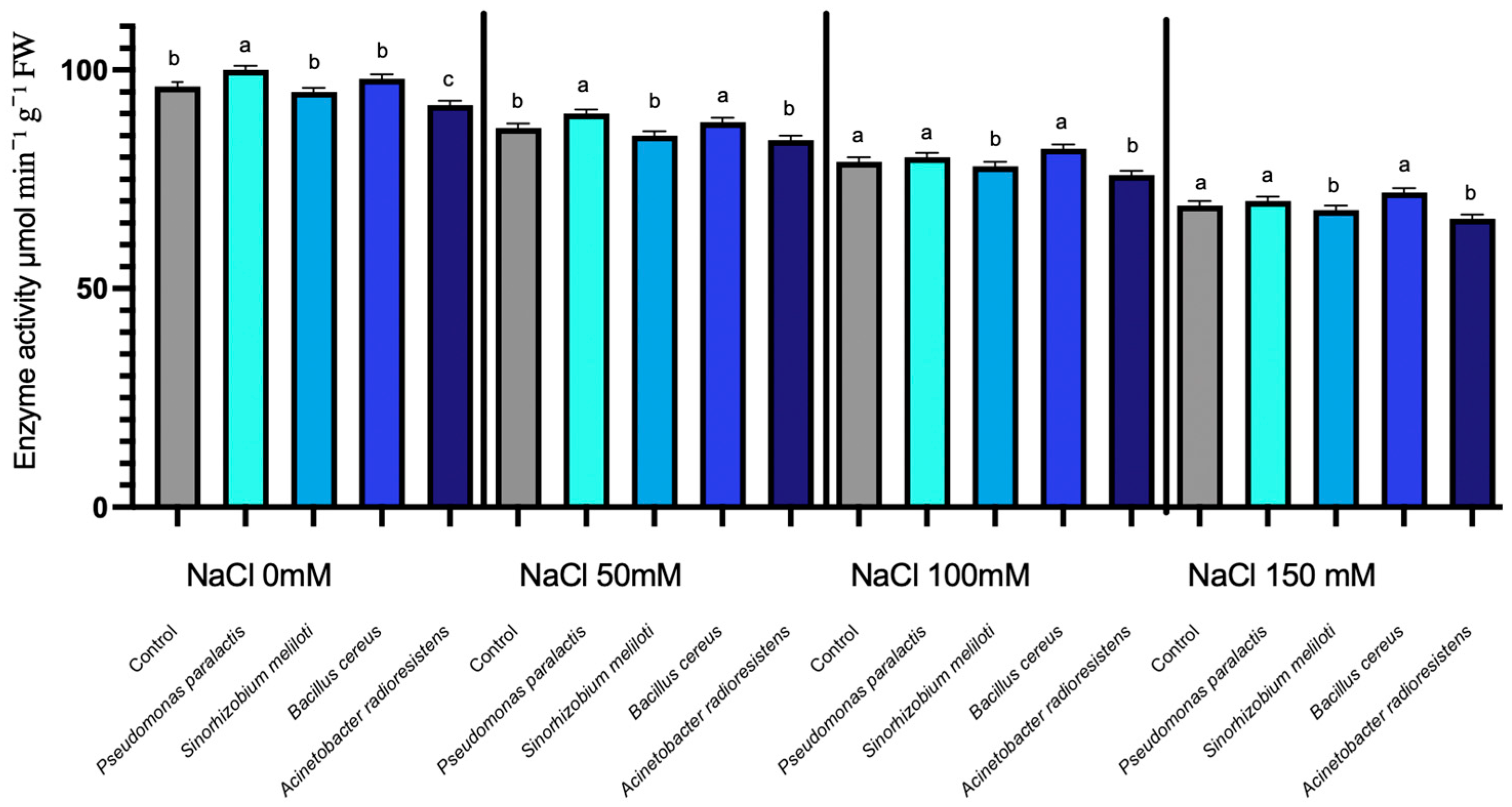 Chicago/Turabian StylePérez-García, Laura-Andrea, Jorge Sáenz-Mata, Manuel Fortis-Hernandez, and Pablo Preciado-Rangel. 2026. "Plant Growth-Promoting Rhizobacteria as a Strategy to Enhance Enzymatic and Metabolic Tolerance of Cucumis sativus L. Under Salinity Stress" Microorganisms 14, no. 2: 351. https://doi.org/10.3390/microorganisms14020351