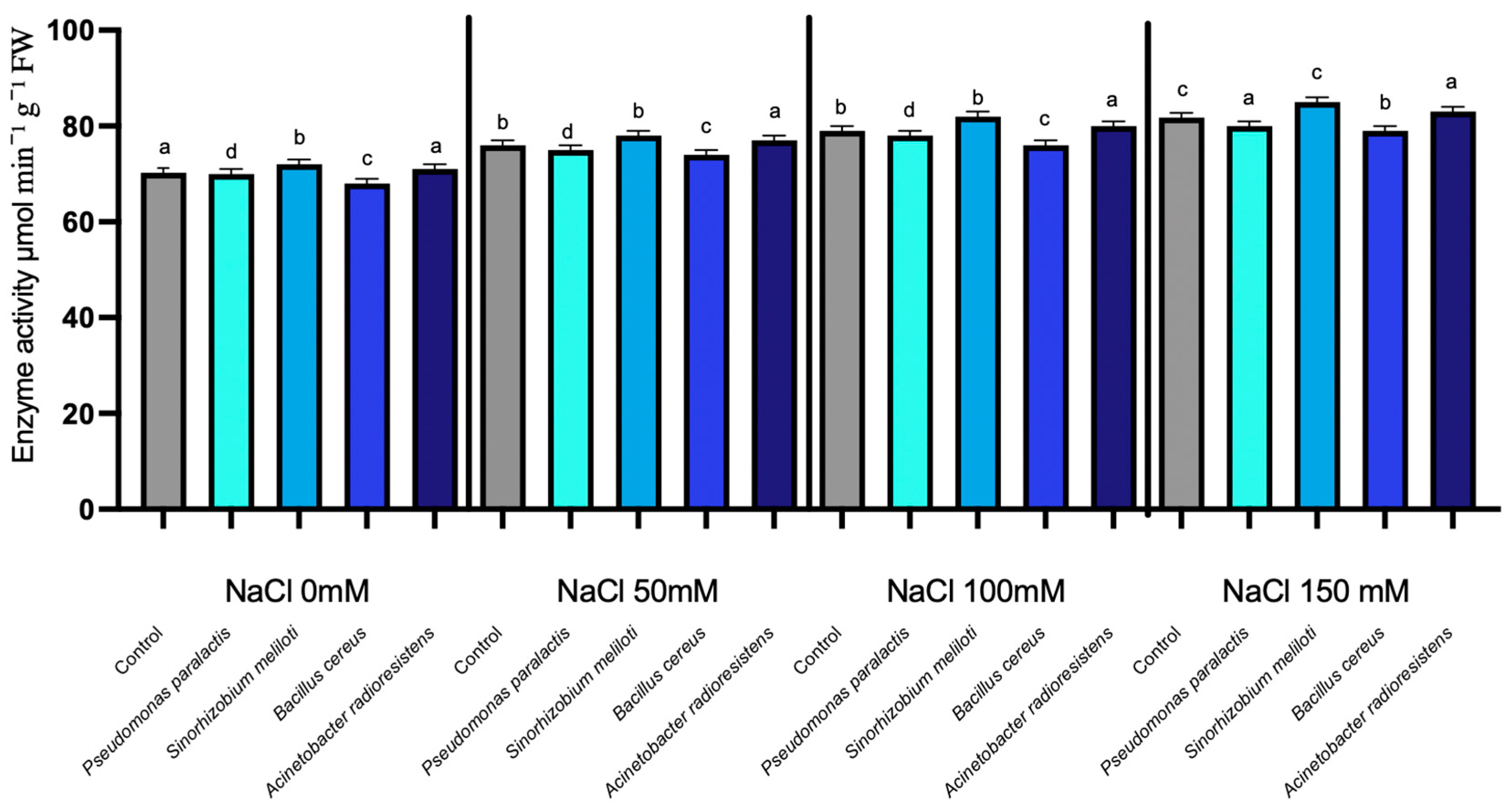 3.1. Plant Enzymatic Response Under Salinity Stress