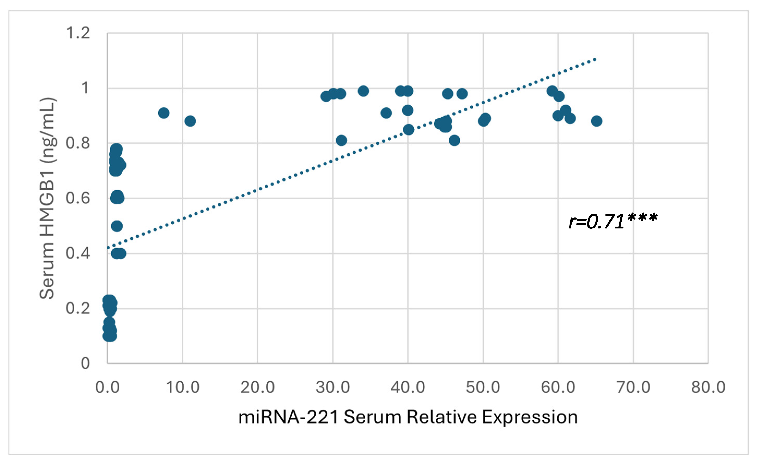 3.4. Correlation Between Serum HMGB1 and miRNA-221