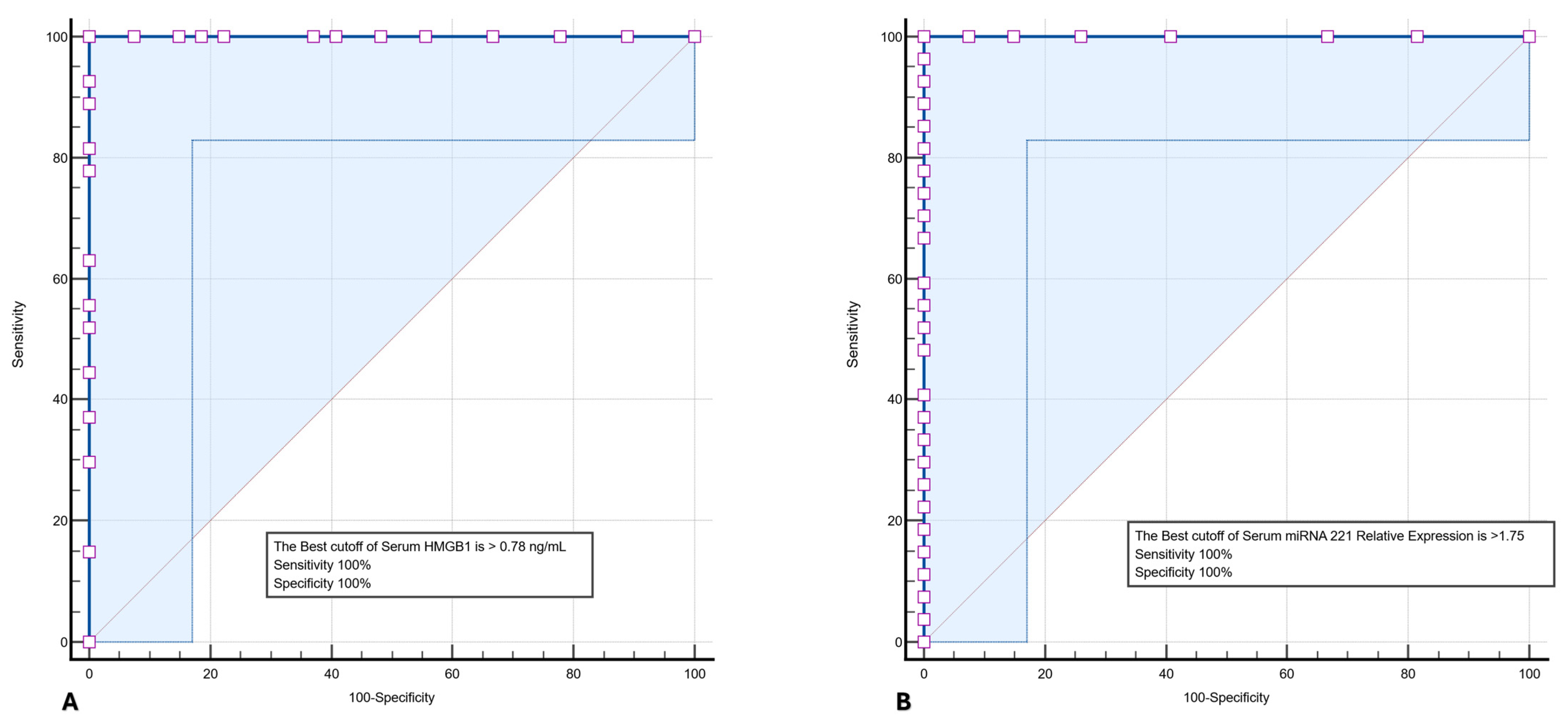 3.5. Diagnostic Performance of HMGB1 and miRNA-221