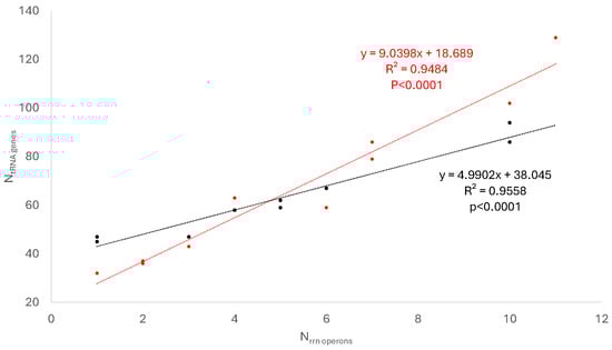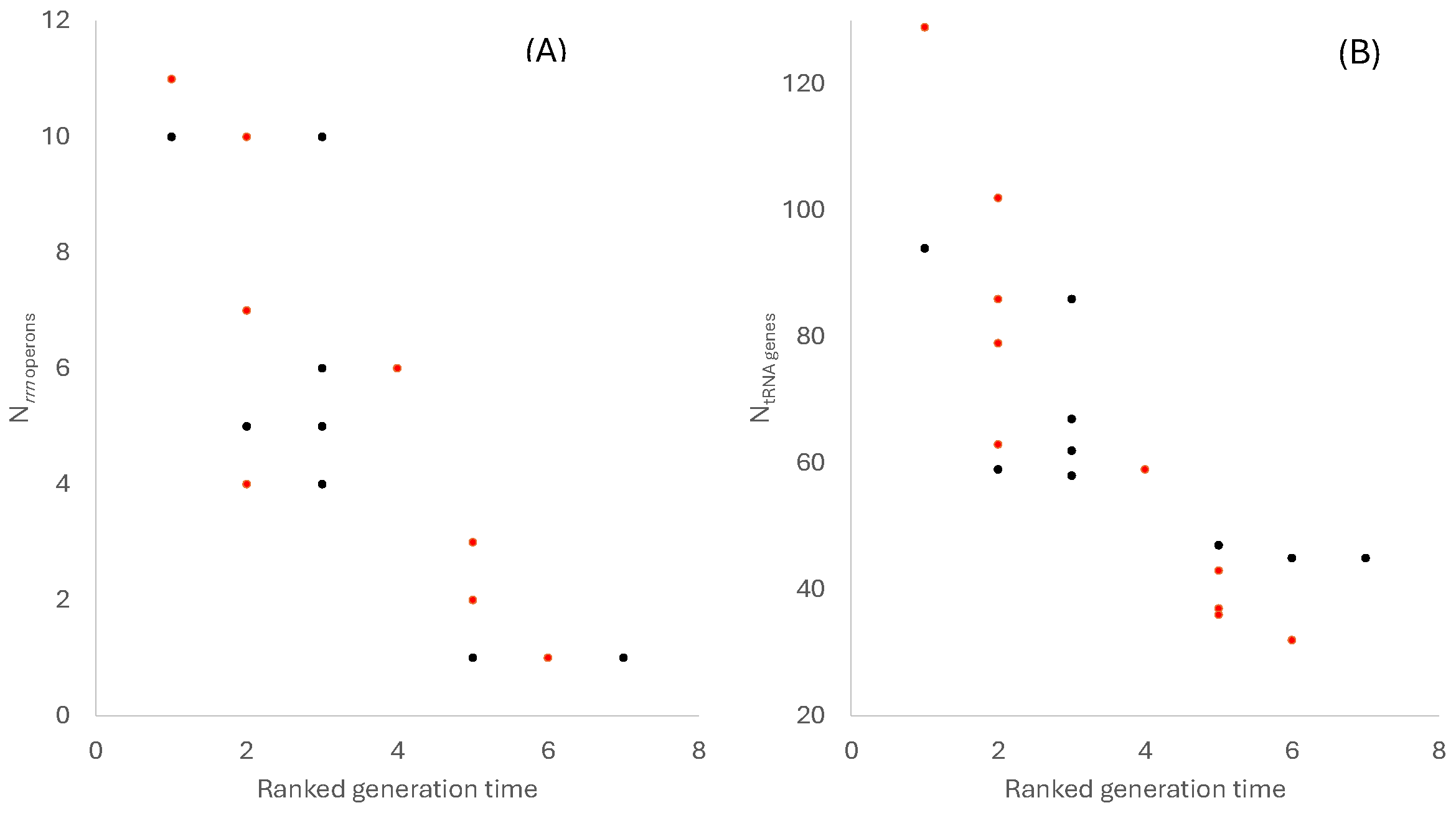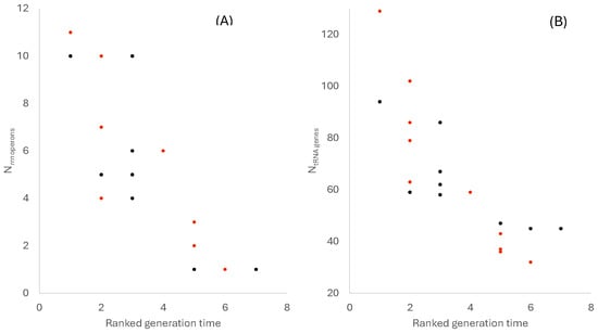 3.1. The Number of rrn Operons and tRNA Genes Decreases with Doubling Time