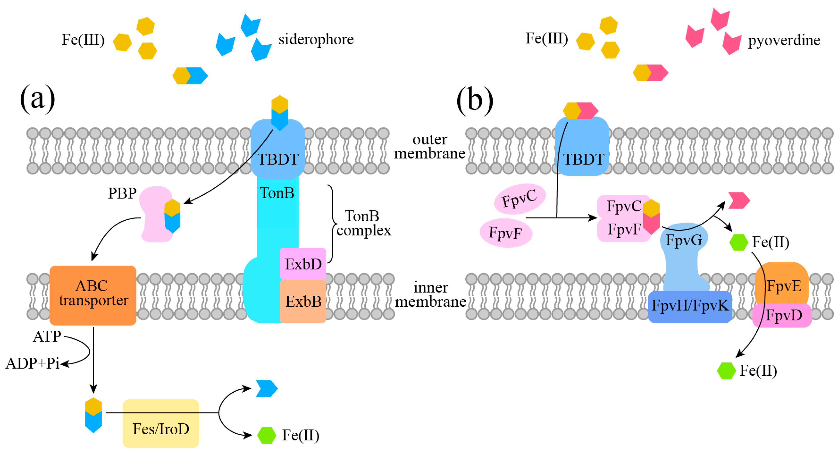 4.1. Siderophore Transport System in Gram-Negative Bacteria