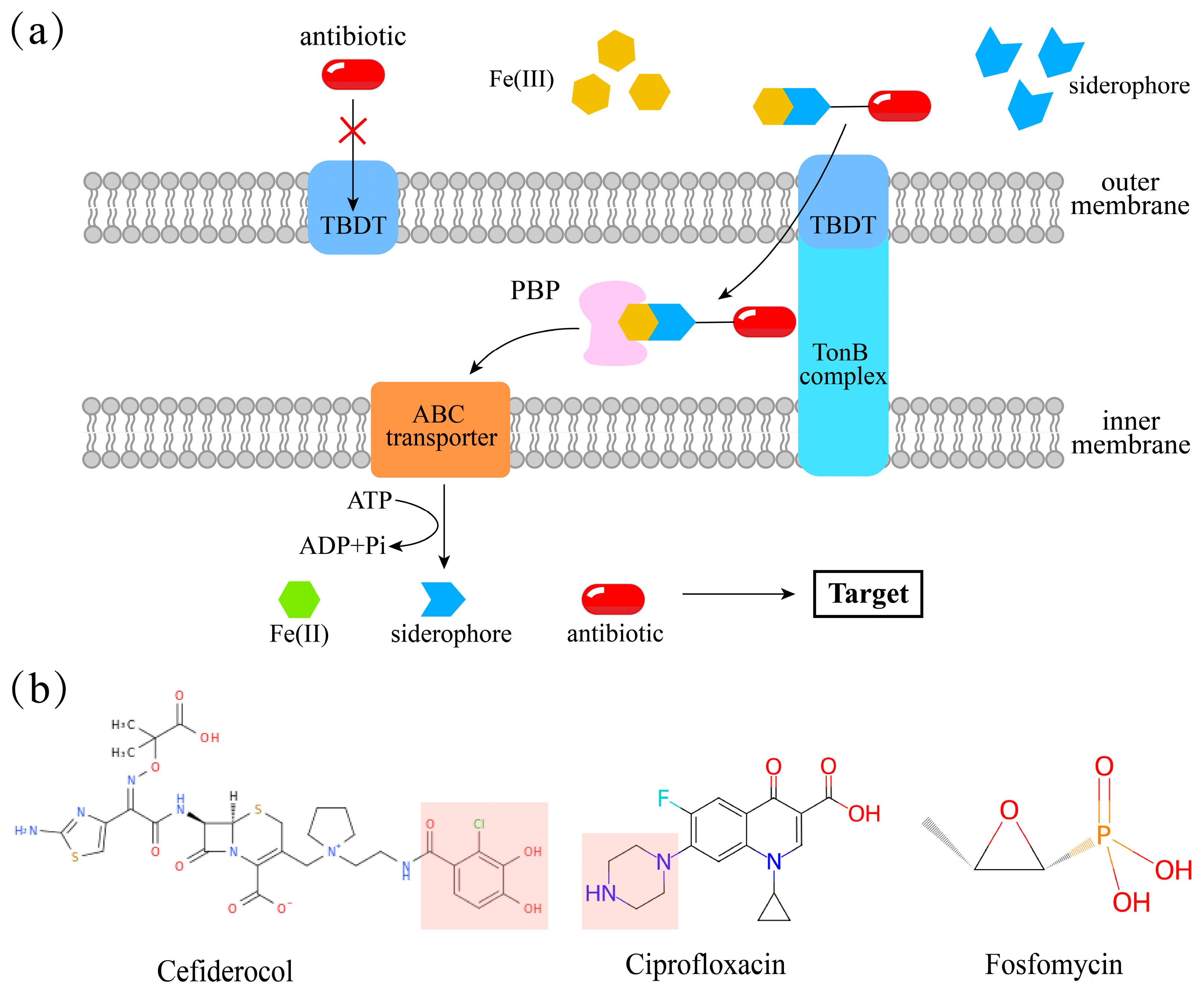 - Schalk, I.J. Siderophore–antibiotic conjugates: Exploiting iron uptake to deliver drugs into bacteria. Clin. Microbiol. Infect. 2018, 24, 801–802. [Google Scholar] [CrossRef]