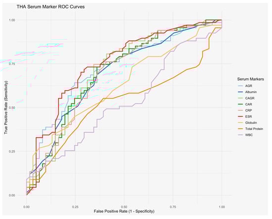 - Dong, M.; Wang, Y.; Fan, H.; Yang, D.; Wang, R.; Feng, Y. The Albumin to Globulin Ratio Performs Well for Diagnosing Periprosthetic Joint Infection: A Single-Center Retrospective Study. J. Arthroplast. 2024, 39, 229–235.e4. [Google Scholar] [CrossRef] [PubMed]