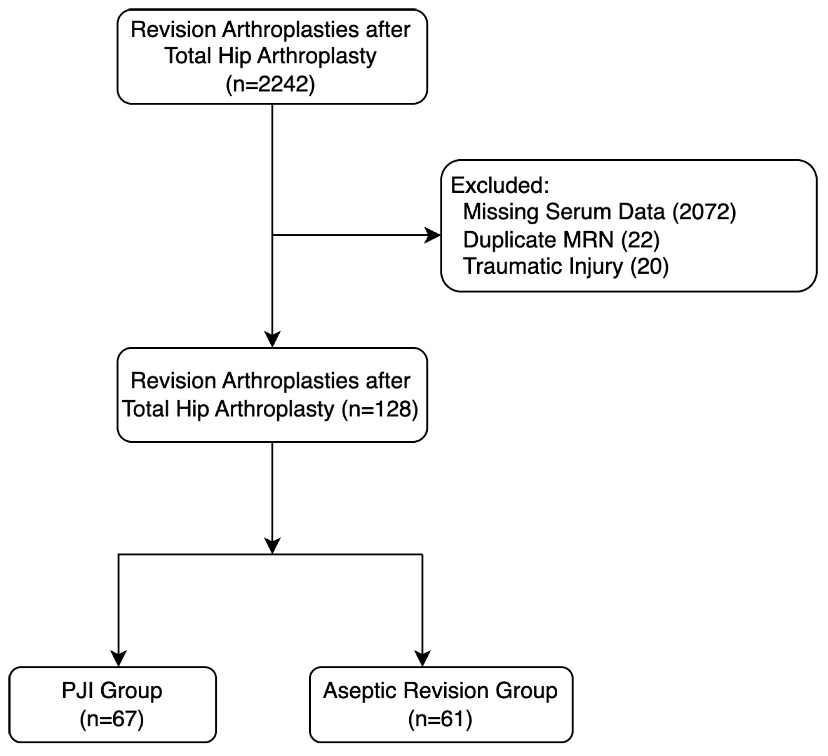| Group | PJI (n = 67) | Aseptic Revisions (n = 61) | p-Value (Wilcoxon) |