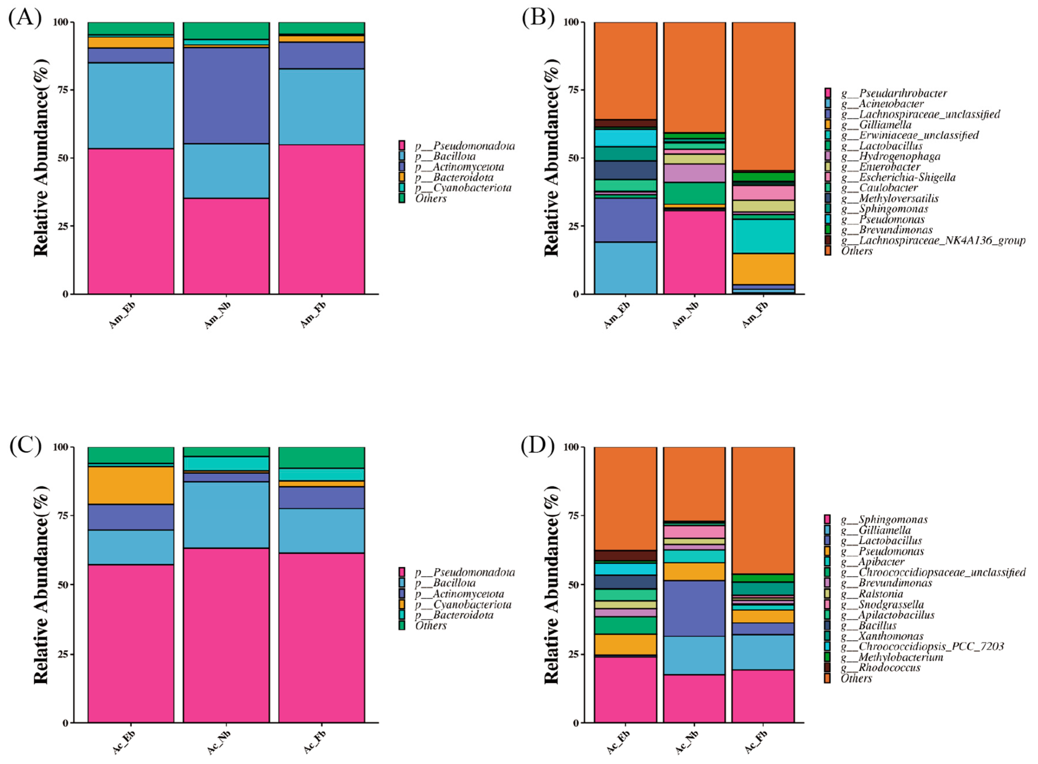 3.2. Composition of Microbiota on Body Surface of Honey Bees