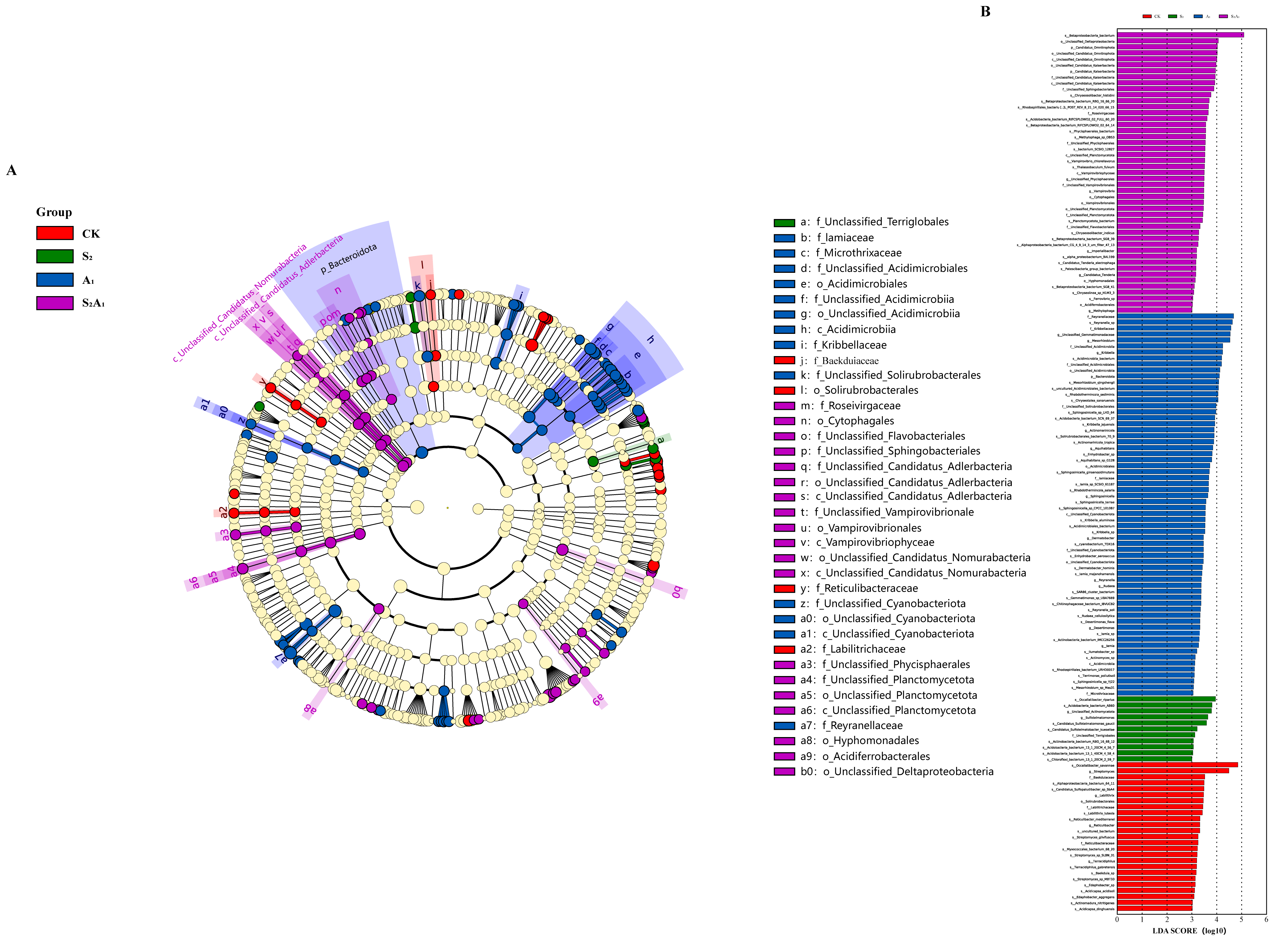 - Yan, K.; Ma, S.; Zhu, Q.; Tian, H.; Wang, Y. Microbial Biotic Associations Dominated Adaptability Differences of Dioecious Poplar Under Salt Stress. Plant Cell Environ. 2025, 48, 3364–3378. [Google Scholar] [CrossRef]