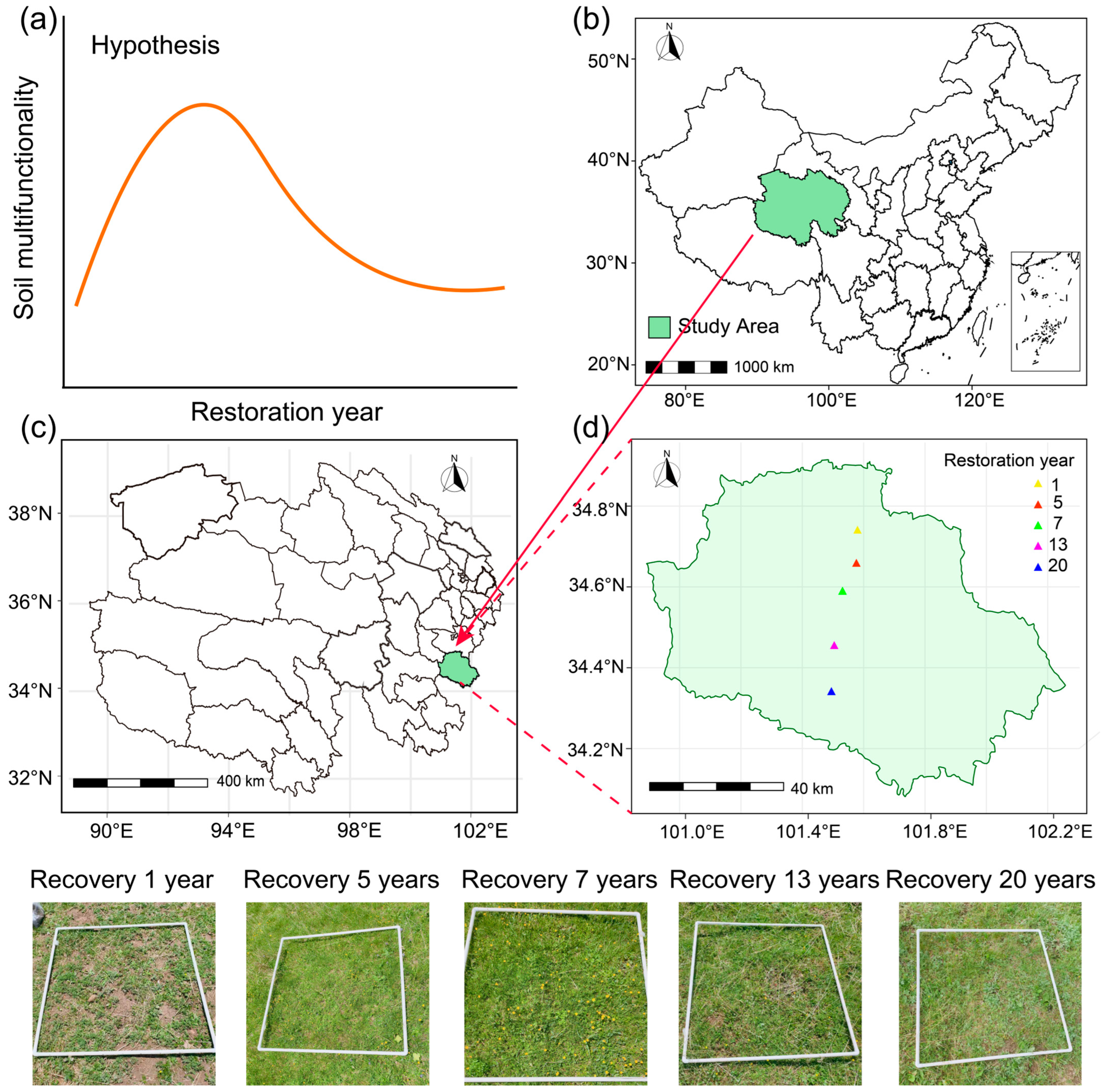 - Xu, H.; Chen, C.; Pang, Z.; Zhang, G.; Zhang, W.; Kan, H. Compared with plant diversity and soil fungal diversity, soil bacterial diversity drives ecosystem multifunctionality during the vegetation restoration process. Appl. Soil Ecol. 2025, 215, 106482. [Google Scholar] [CrossRef]