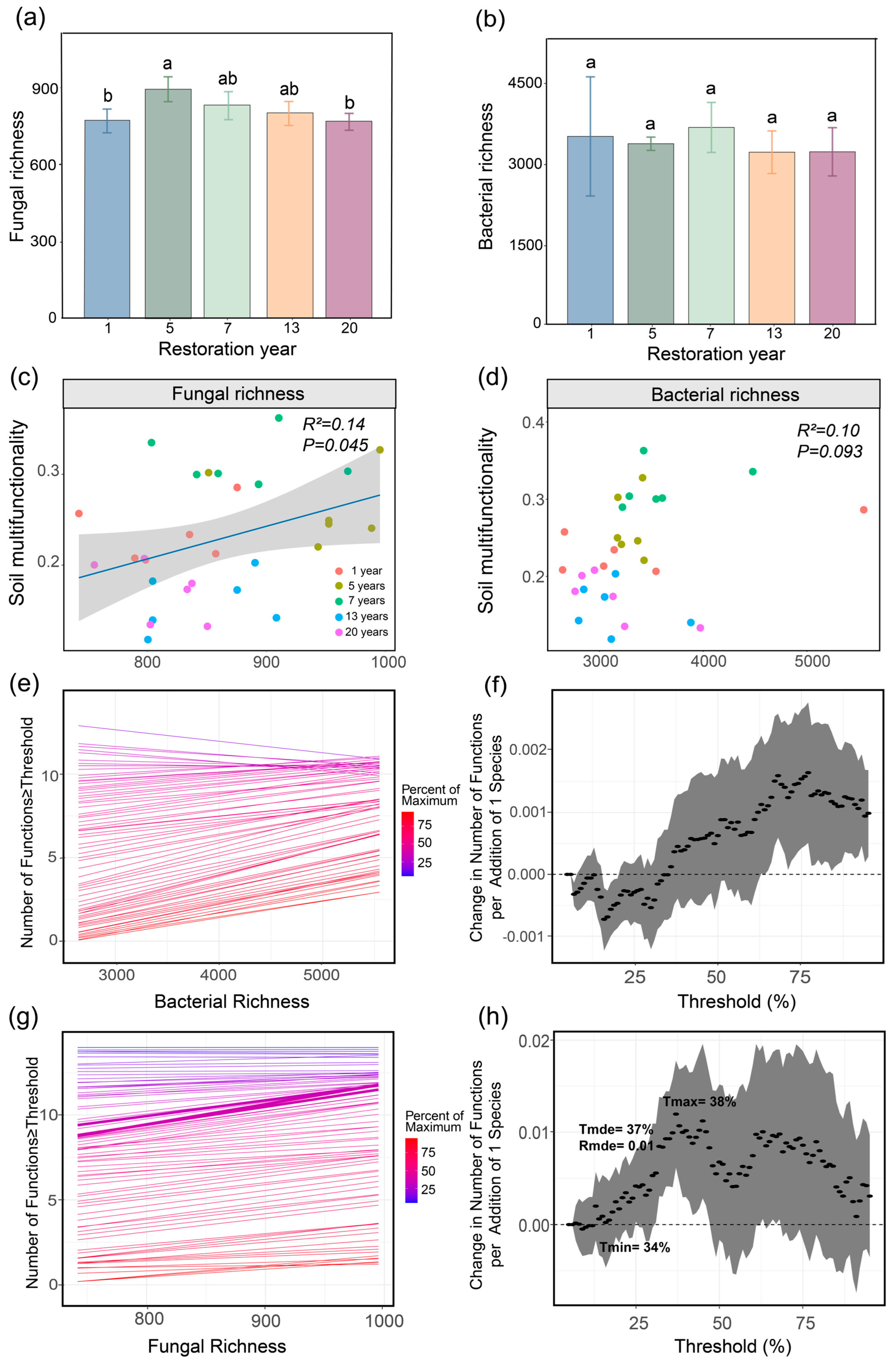 - Gong, X.; Jarvie, S.; Wen, J.; Su, N.; Yan, Y.; Liu, Q.; Zhang, Q. Compared with soil fungal diversity and microbial network complexity, soil bacterial diversity drives soil multifunctionality during the restoration process. J. Environ. Manag. 2024, 354, 120379. [Google Scholar] [CrossRef]