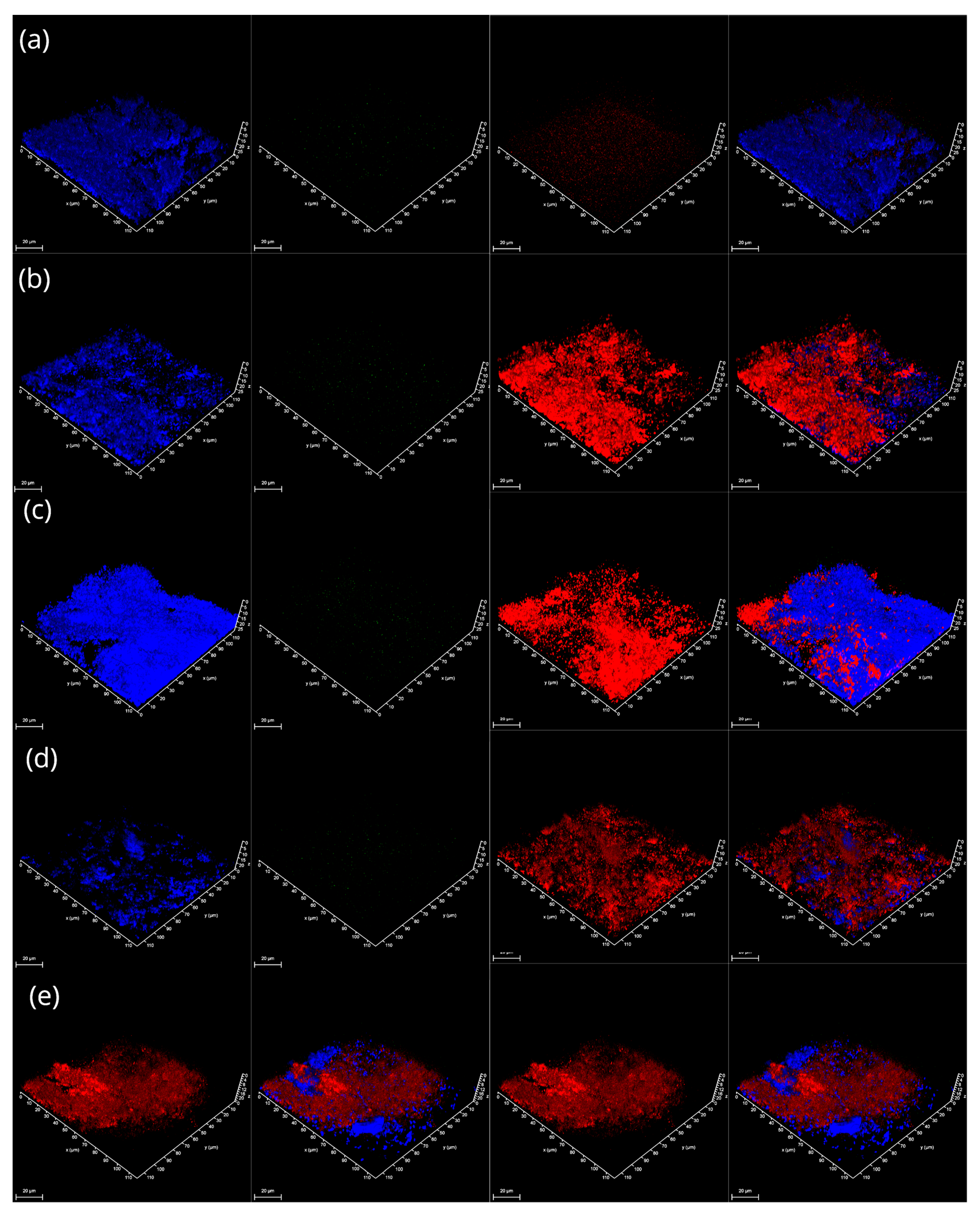 - Polymeric Extracellular Matrix (Cellulose): Calcofluor White (ex/em 380/475 nm).