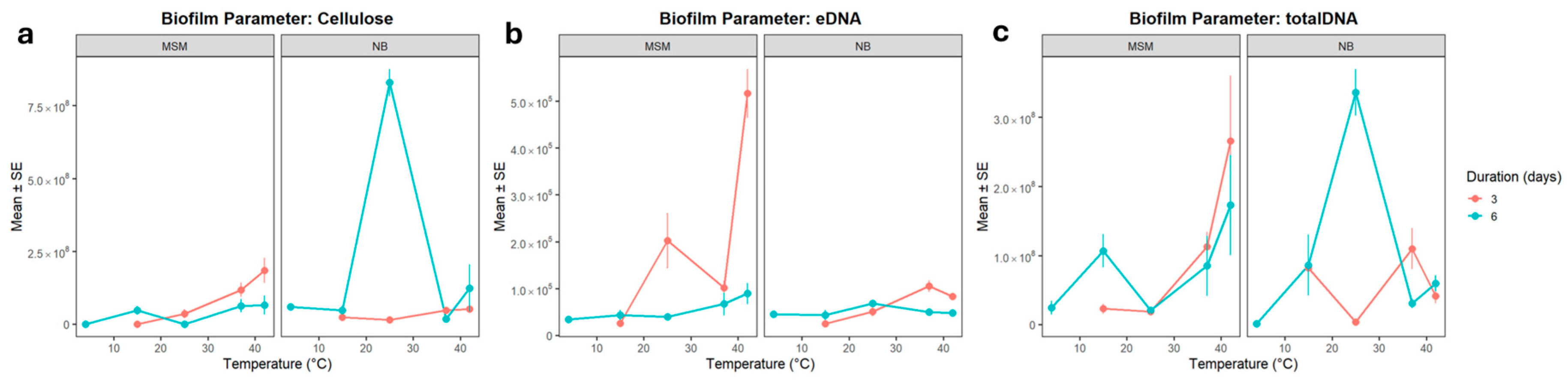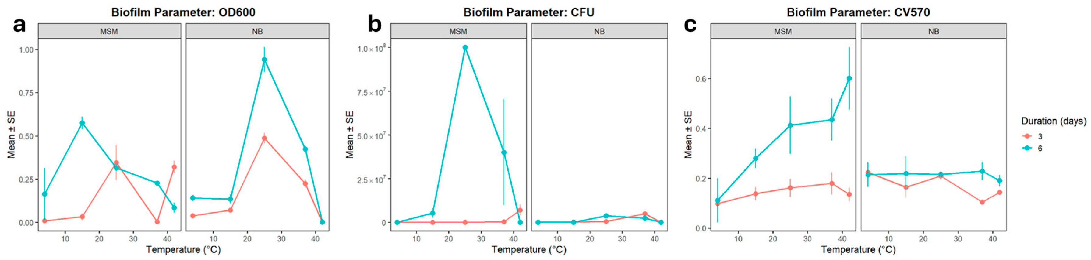 4.1. Thermal Plasticity of Antarctic Plant-Associated Biofilms