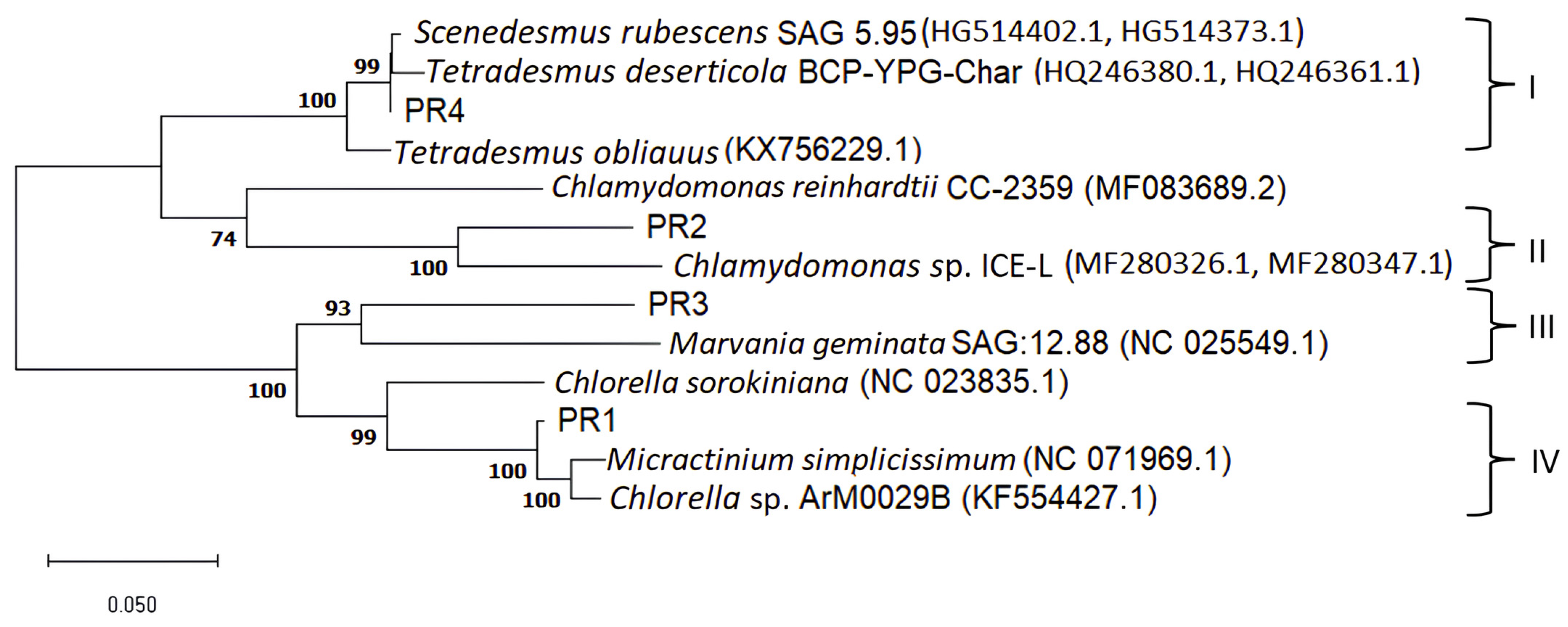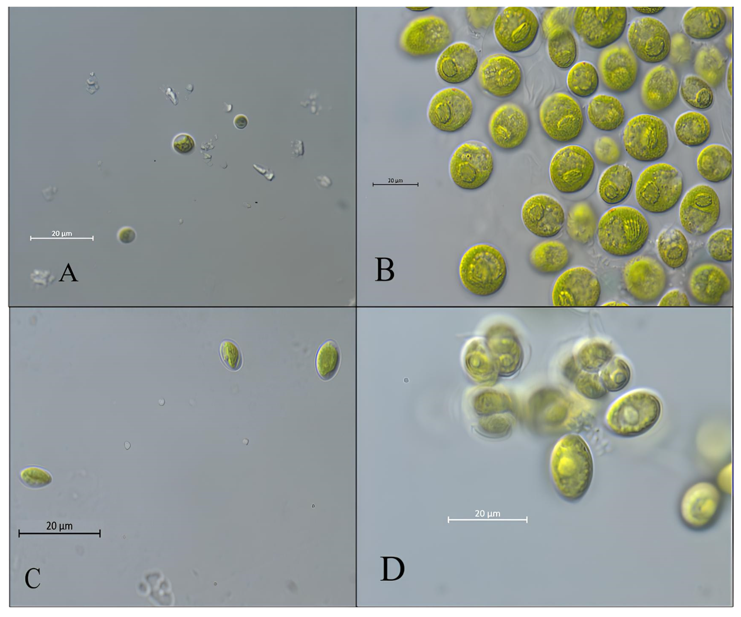 3.2. Microalgal Strains from Hydroponic Effluent Algal Bloom