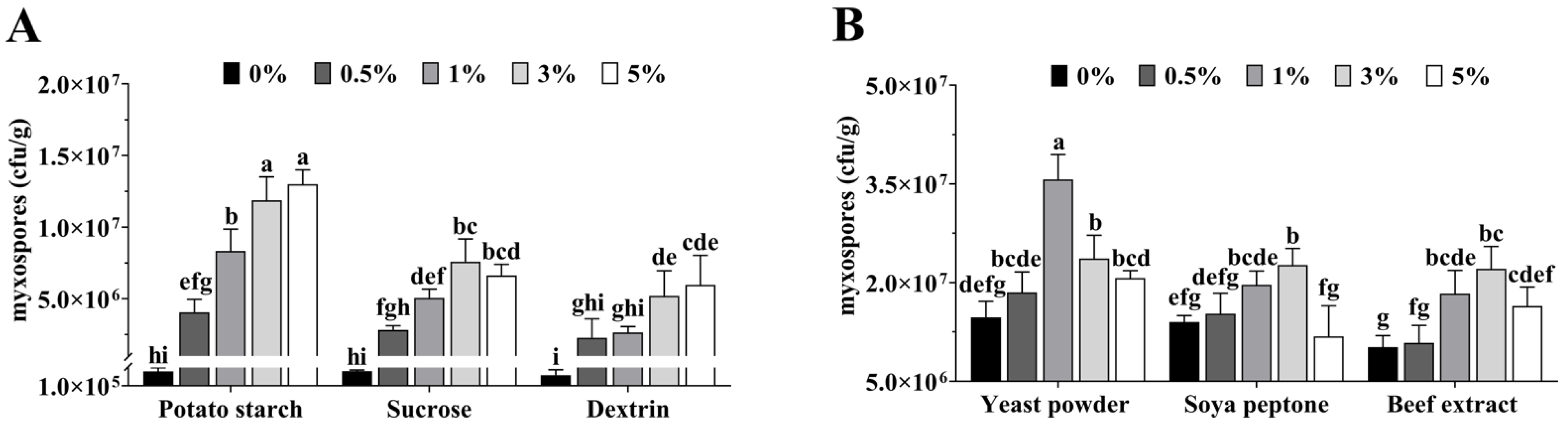 3.2. Screening of Supplemental Carbon and Nitrogen Sources