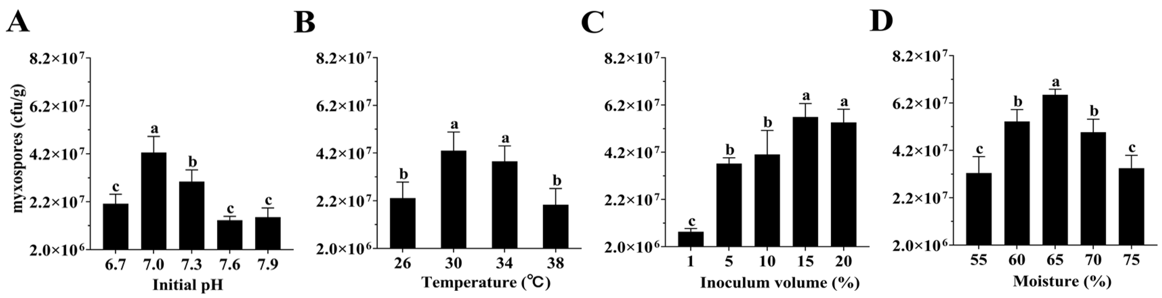 3.3. Single-Factor Optimization of Fermentation Conditions