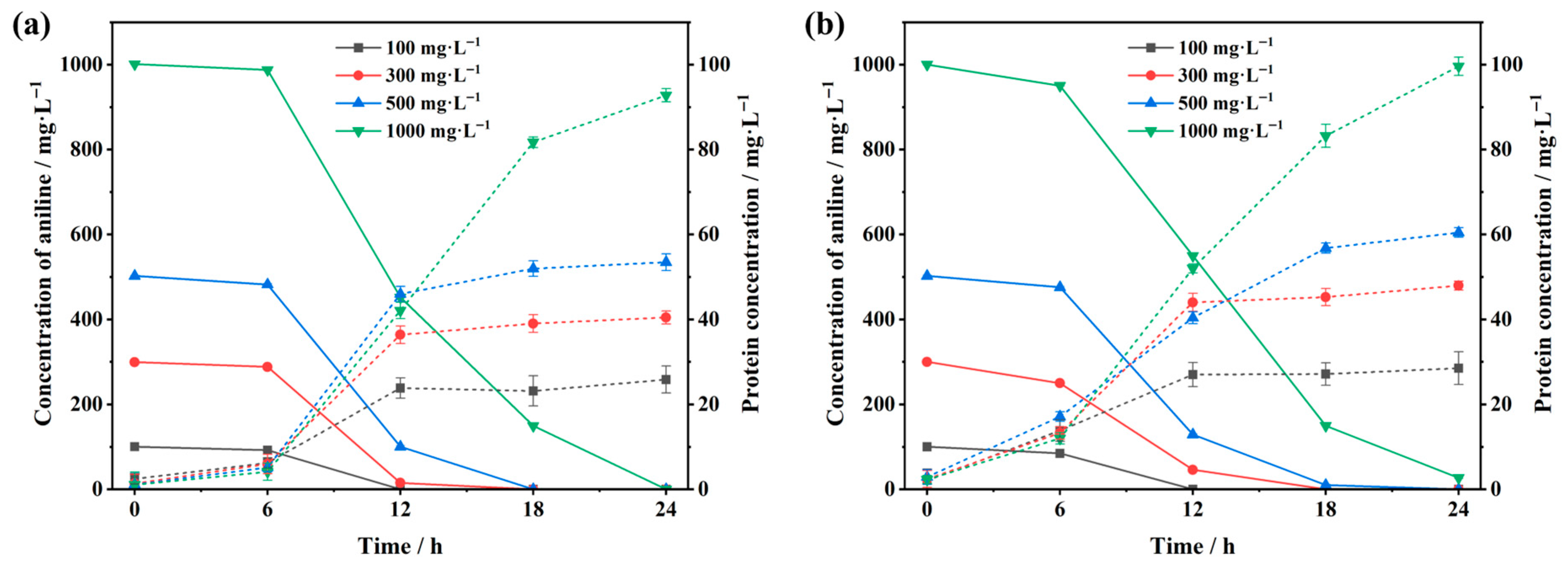 - Yang, L.; Ying, C.; Fang, N.; Zhong, Y.; Zhao-Xiang, Z.; Yun, S. Identification and Characterization of a High Efficiency Aniline Resistance and Degrading Bacterium MC-01. Appl. Biochem. Biotechnol. 2017, 182, 41–54. [Google Scholar] [CrossRef]