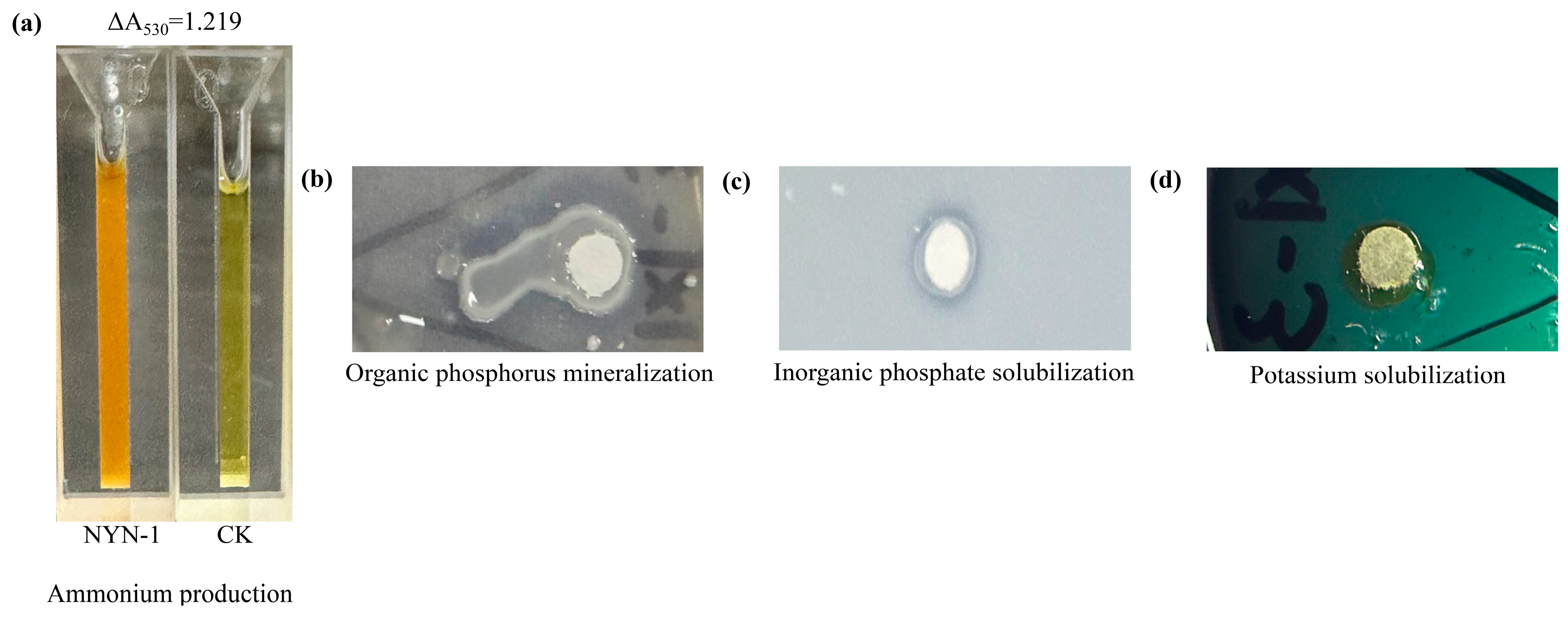 2.3. Detection of Plant Growth-Promoting Activities of NYN-1