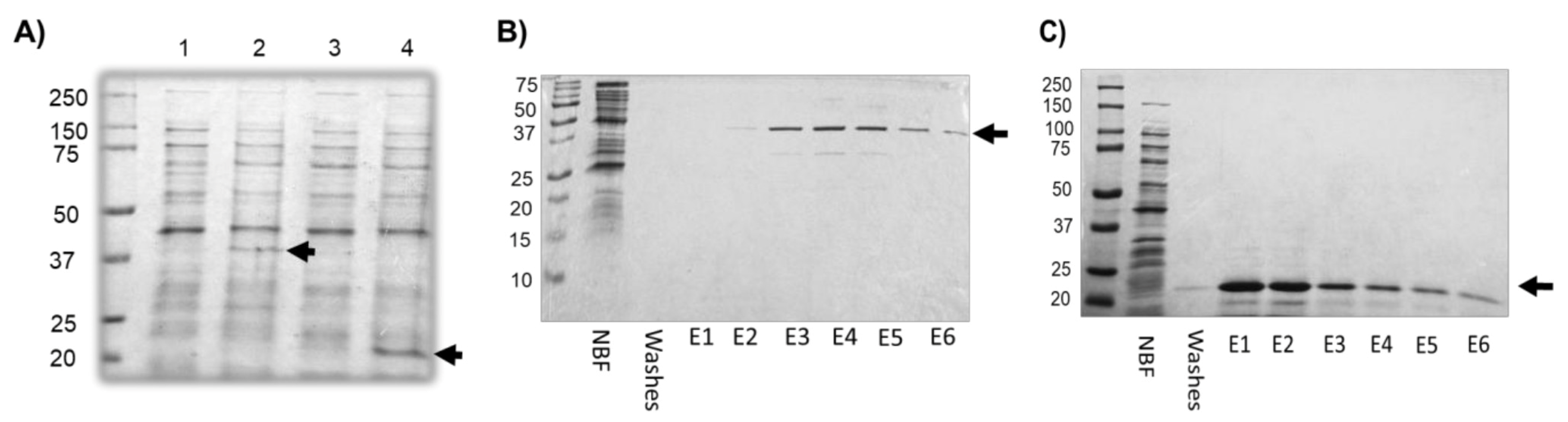 2.1. Expression and Purification of Recombinant EhCFIm25 and EhPC4 Proteins