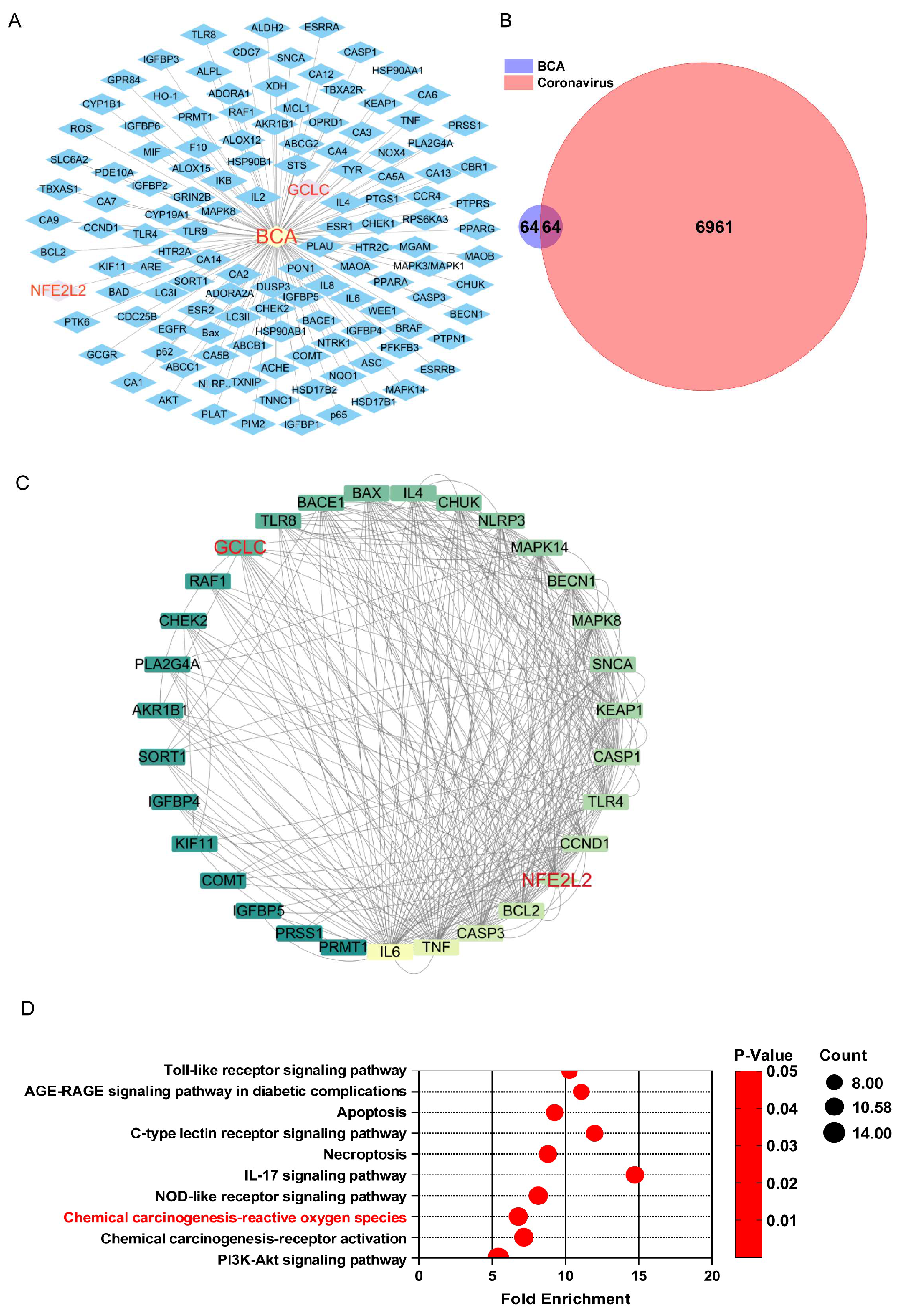 3.3. Network Pharmacology Analysis Suggests That BCA May Suppress Coronavirus Infection by Regulating the Nrf2-Mediated Antioxidant Pathway
