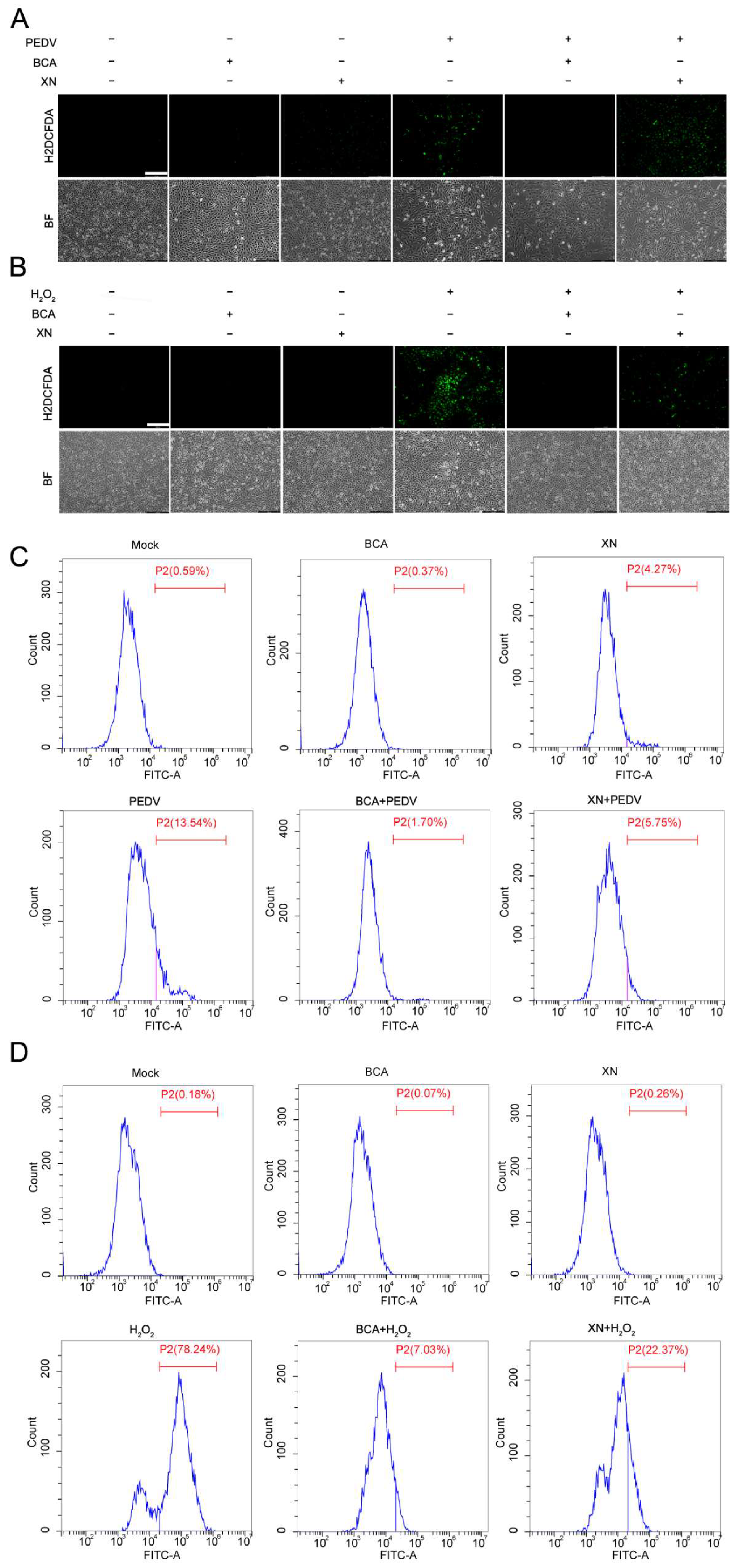 3.4. BCA Alleviates PEDV-Induced Oxidative Stress