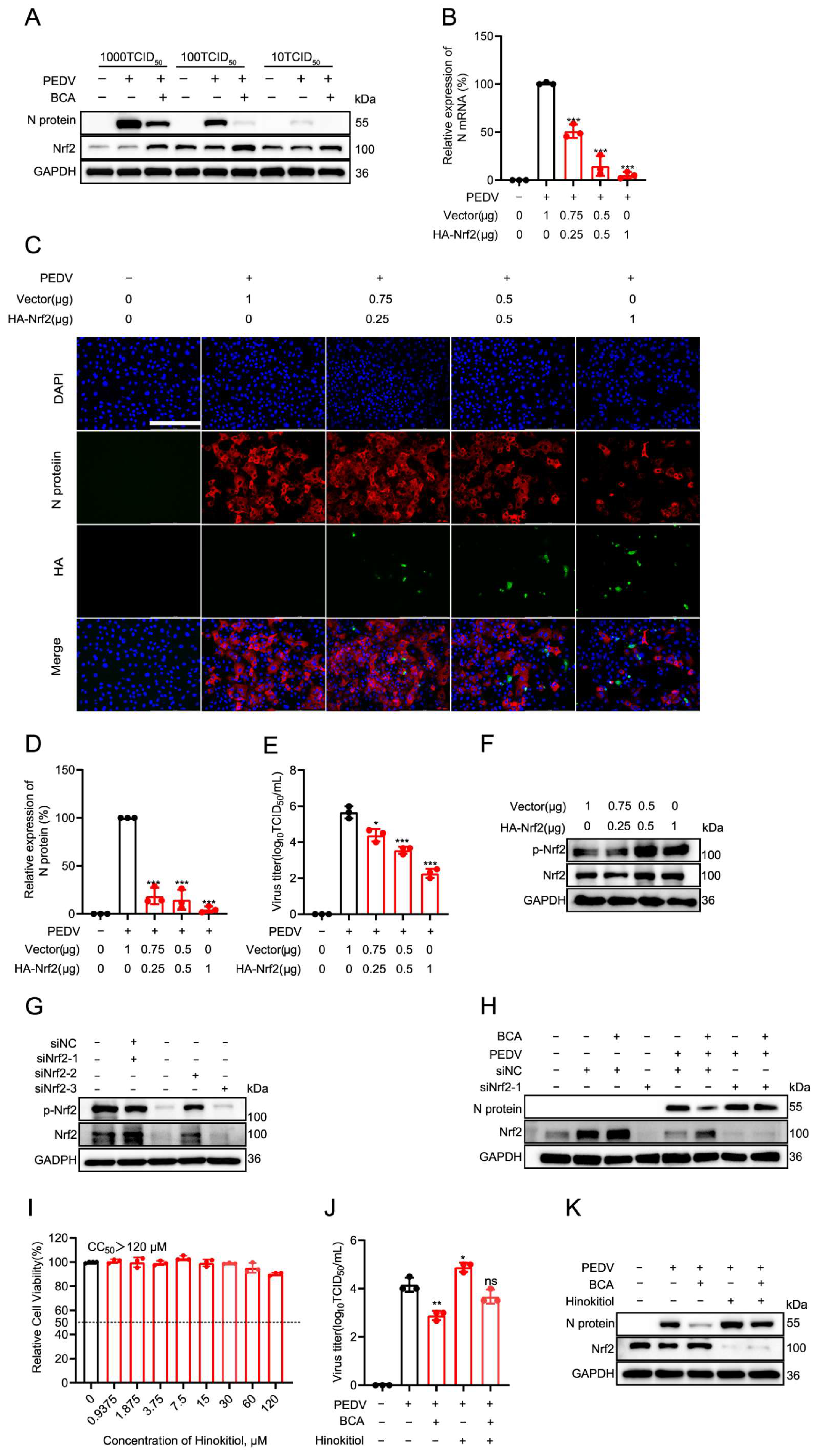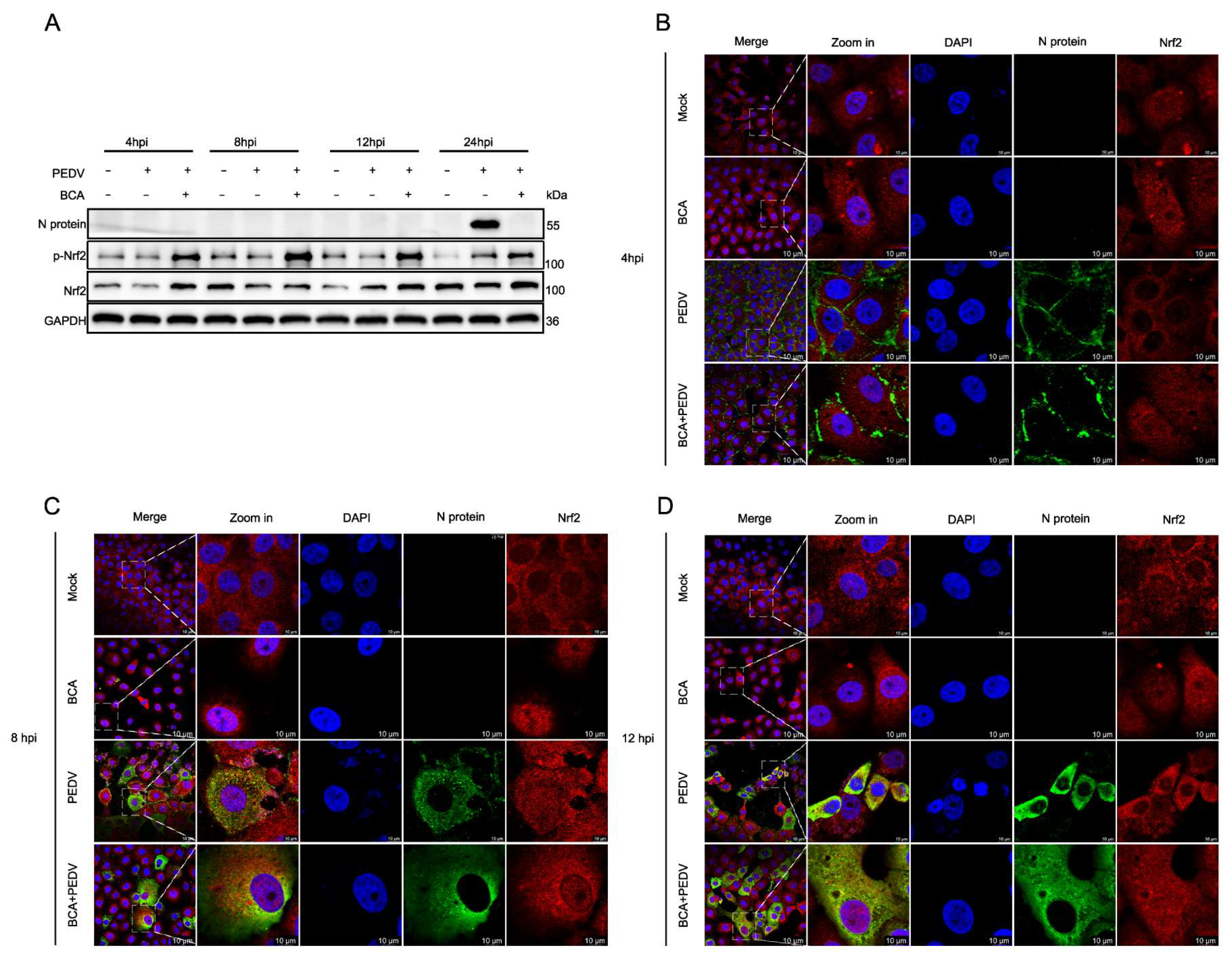 3.5. Nrf2 Activation Is Essential for the Anti-PEDV Activity of BCA