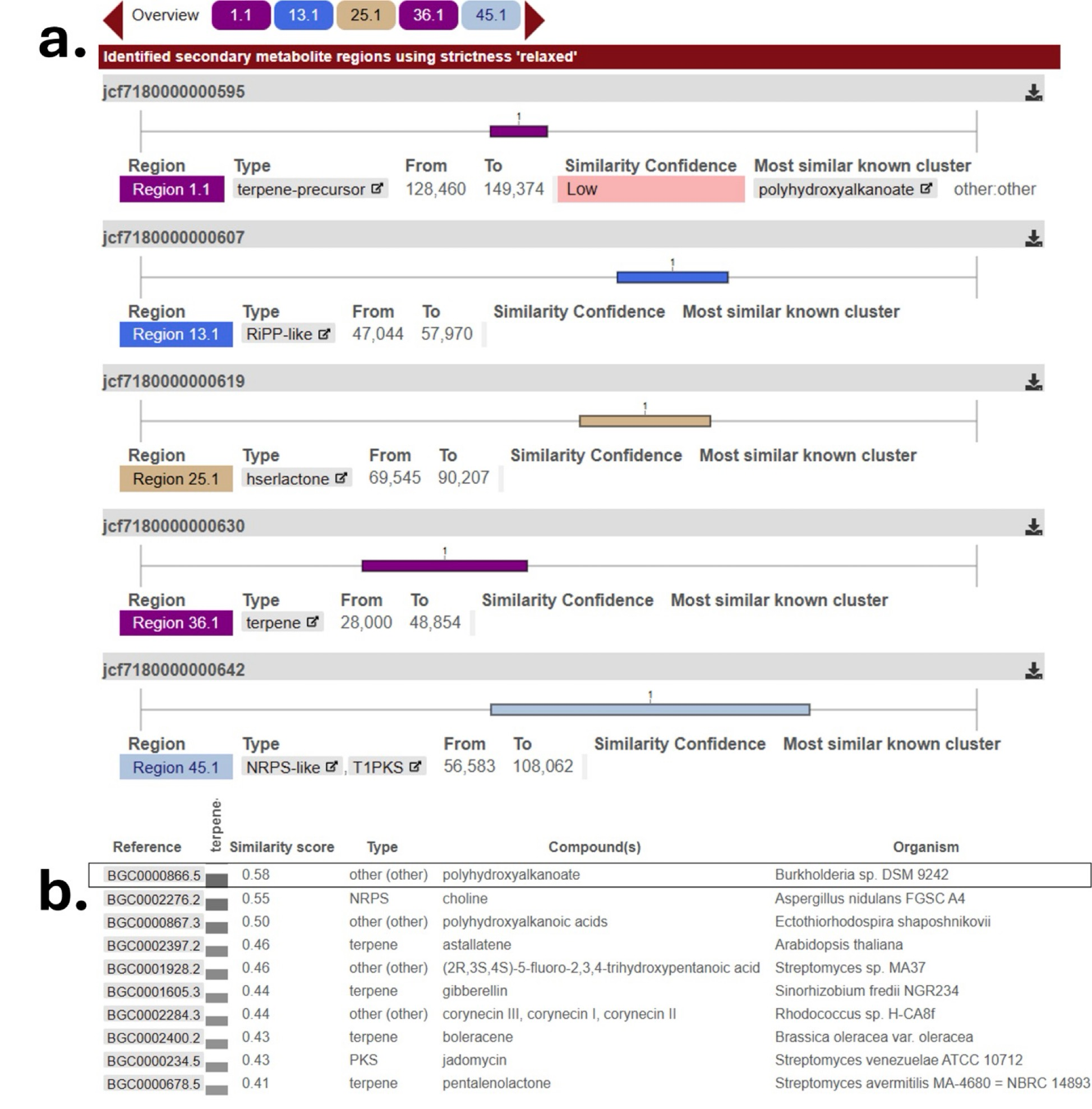 3.3.2. Secondary Metabolite Biosynthetic Gene Clusters