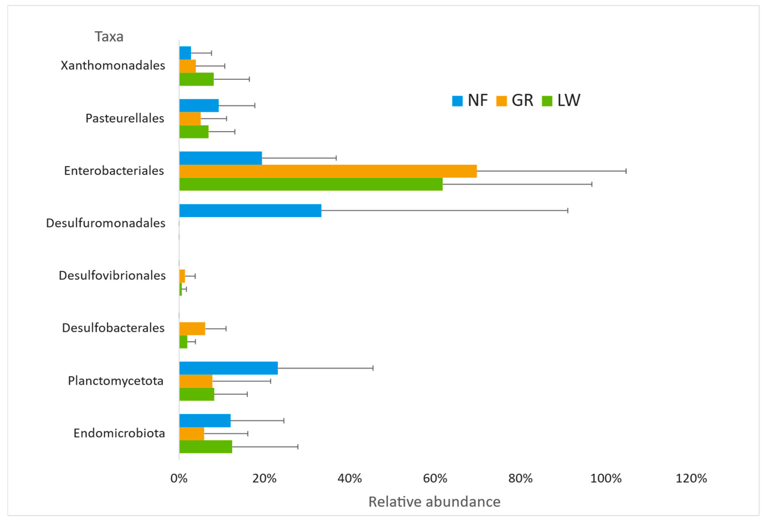 2.4. Bacterial, Archaeal and Iron-Reducing Community Composition by NGS