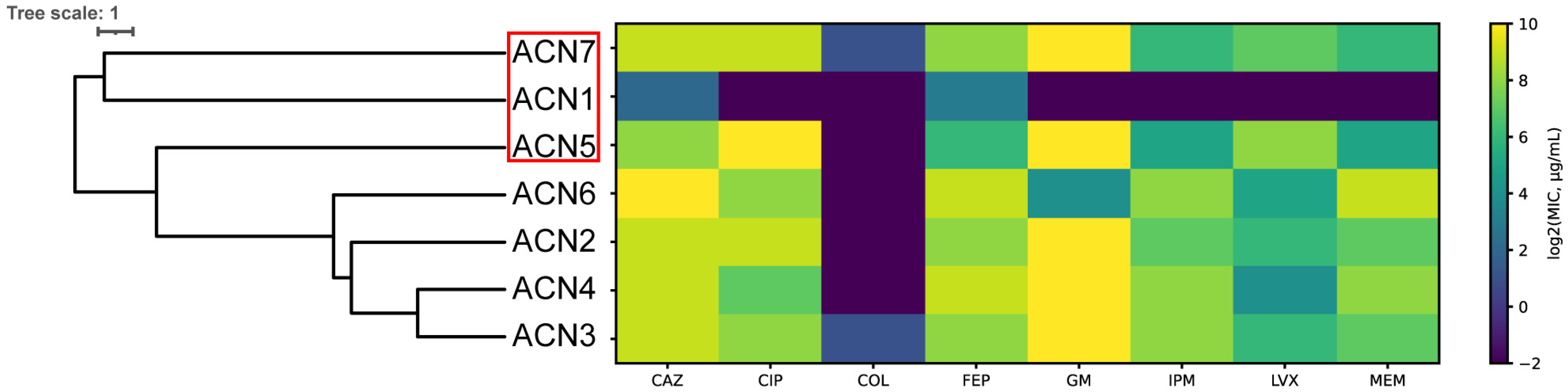 - Dehbanipour, R.; Ghalavand, Z. Acinetobacter Baumannii: Pathogenesis, Virulence Factors, Novel Therapeutic Options and Mechanisms of Resistance to Antimicrobial Agents with Emphasis on Tigecycline. J. Clin. Pharm. Ther. 2022, 47, 1875–1884. [Google Scholar] [CrossRef]