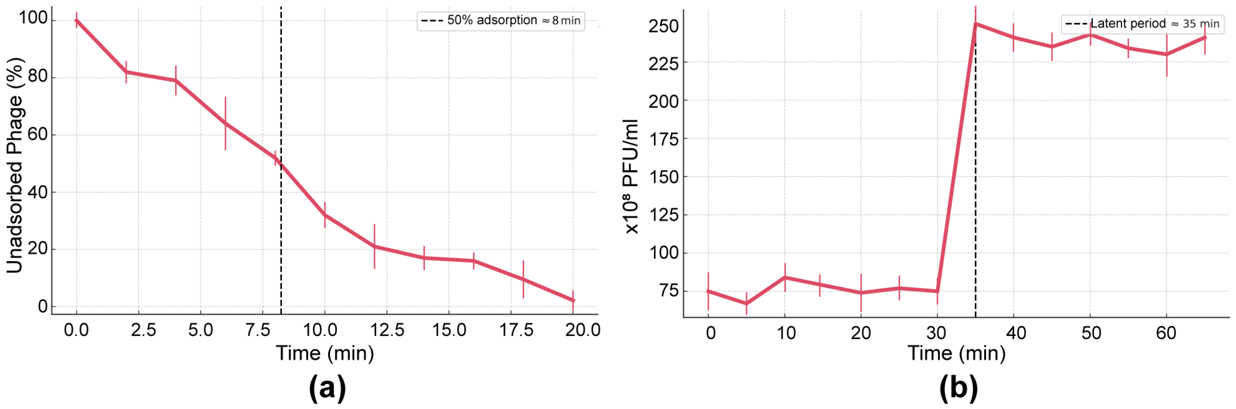3.2. Phage Adsorption, Replication Kinetics, and Lytic Activity