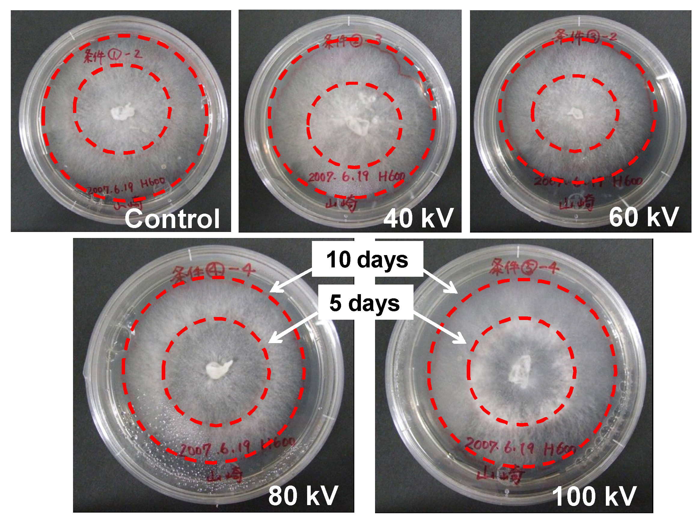 - Tsukamoto, S.; Maeda, T.; Ikeda, M.; Akiyama, H. Application of pulsed power to mushroom culturing. In Proceedings of the 14th IEEE International Pulsed Power Conference, Dallas, TX, USA, 15–18 June 2003; Volume 2, pp. 1116–1119.