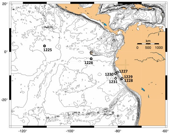 - Shipboard Scientific Party. Proceedings of the Ocean Drilling Program, Initial Reports 201. Site 1225. Available online: http://www-odp.tamu.edu/publications/201_IR/VOLUME/CHAPTERS/IR201_06.PDF (accessed on 15 July 2016).